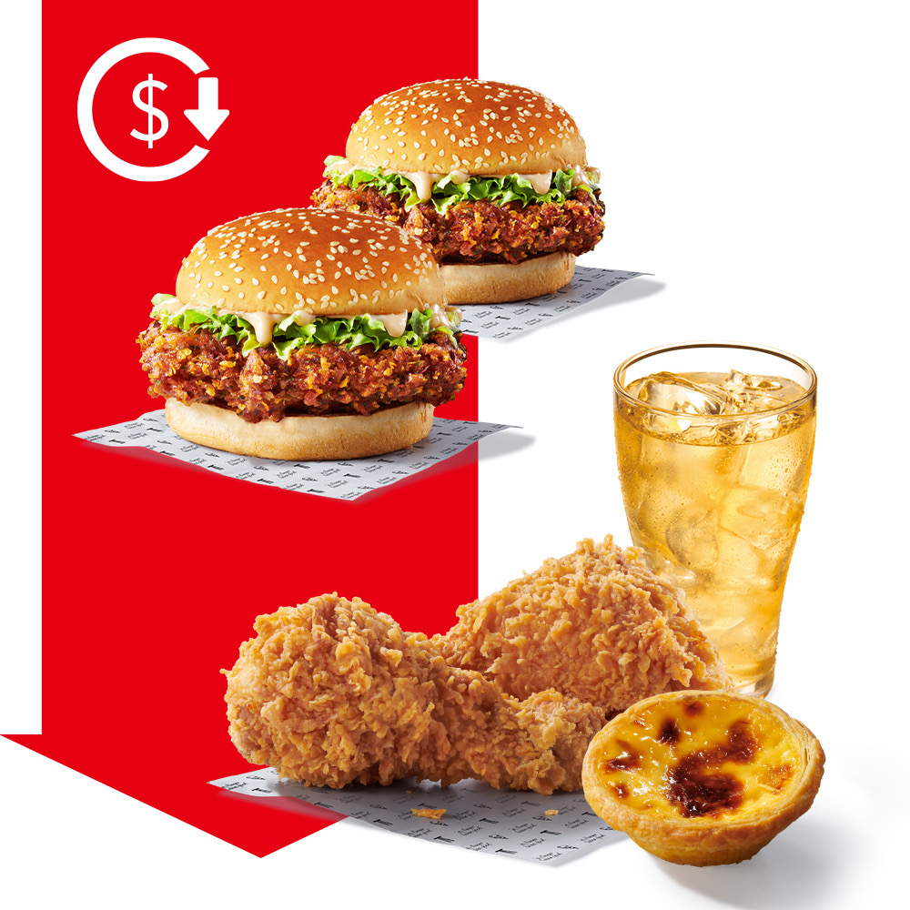 咔啦雞腿堡鐵粉尖叫吧!肯德基這波直接放大招,漢堡第二件半價強勢登場!兩份經典酥脆多汁的咔啦雞腿堡平均一堡要$72(優惠代碼:40650),香麻過癮的青花椒咔啦雞腿堡平均一堡也只要$79(優惠代碼:40665),甜甜價就能輕鬆入手吃堡飽!一人爽爽嗑的天天激省餐「咔啦脆雞x2+原味蛋撻x1+冰無糖綠茶(小)x1 」只要$139(優惠代碼:40531),炸雞蛋撻不用搶,獨自嗨吃好幸福!
