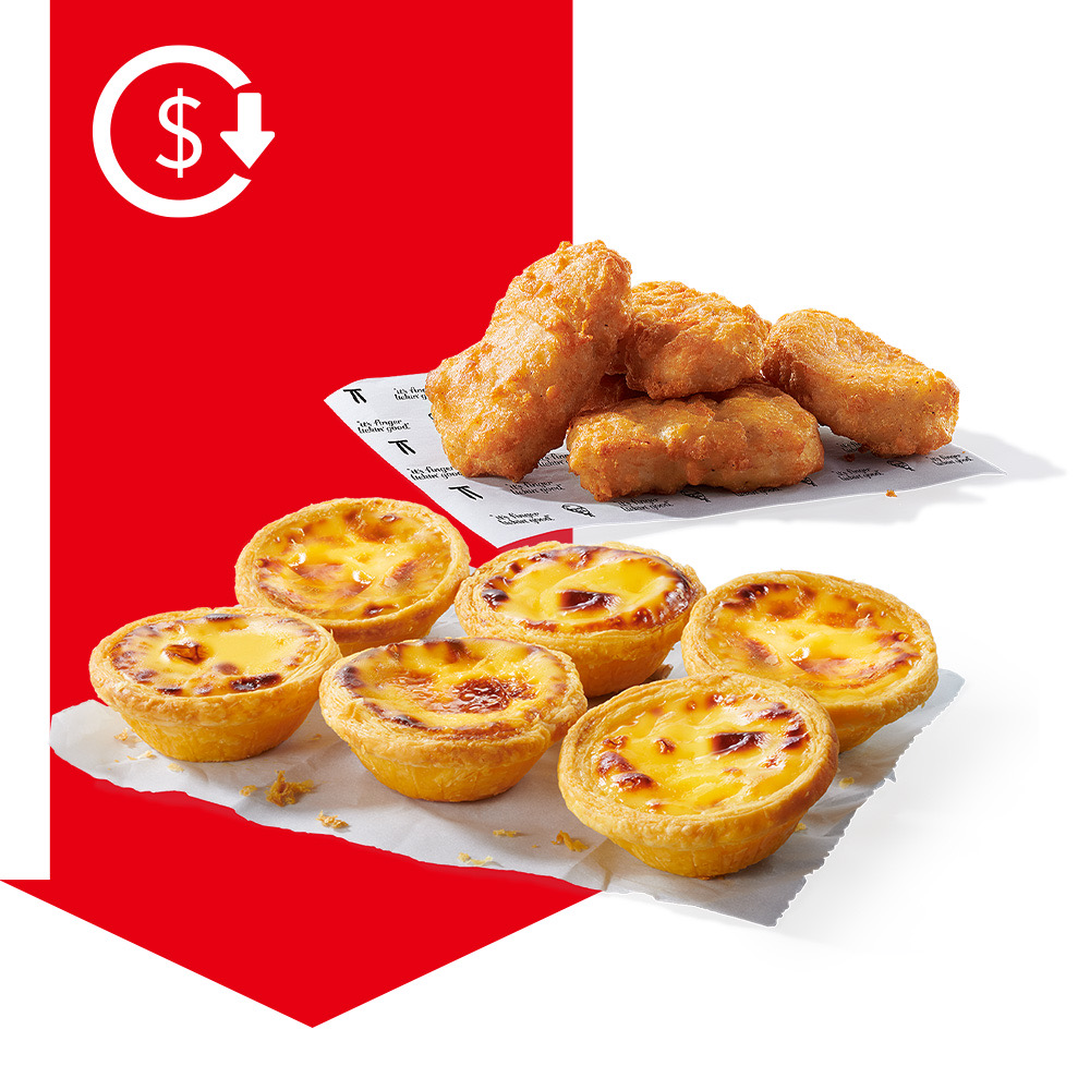 肯德基限時超值組合「歡聚蛋撻禮盒」(優惠代碼:40649)「4塊上校雞塊 x1 + 原味蛋撻 x6」,現在只要$205!甜鹹搭配一次滿足