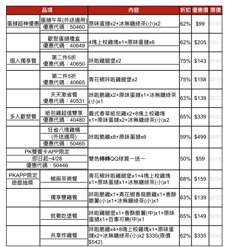 肯德基 4/22~5/5【省荷包大放送優惠一覽表】https://www.kfcclub.com.tw/coupon