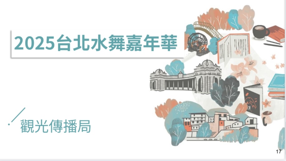 觀傳局於說明會中公布臺北市下半年度重點觀光活動,內容豐富多元,涵蓋文化、藝術、美食、運動、音樂、宗教等元素,充分展現臺北多元包容的特色與強大創意能量。5月17日即將登場的「2025 雙北世界壯年運動會」,是首次在亞洲舉辦的賽會,邀請大家進場觀賽,為選手加油;5月底「臺北國際龍舟錦標賽」則有海內外選手在基隆河畔熱血開戰,傳遞端午文化精神與活力。8月登場的「大稻埕夏日節」以璀璨煙火結合歷史街區、河岸風情與在地美食,是夏日不可錯過的浪漫盛典。