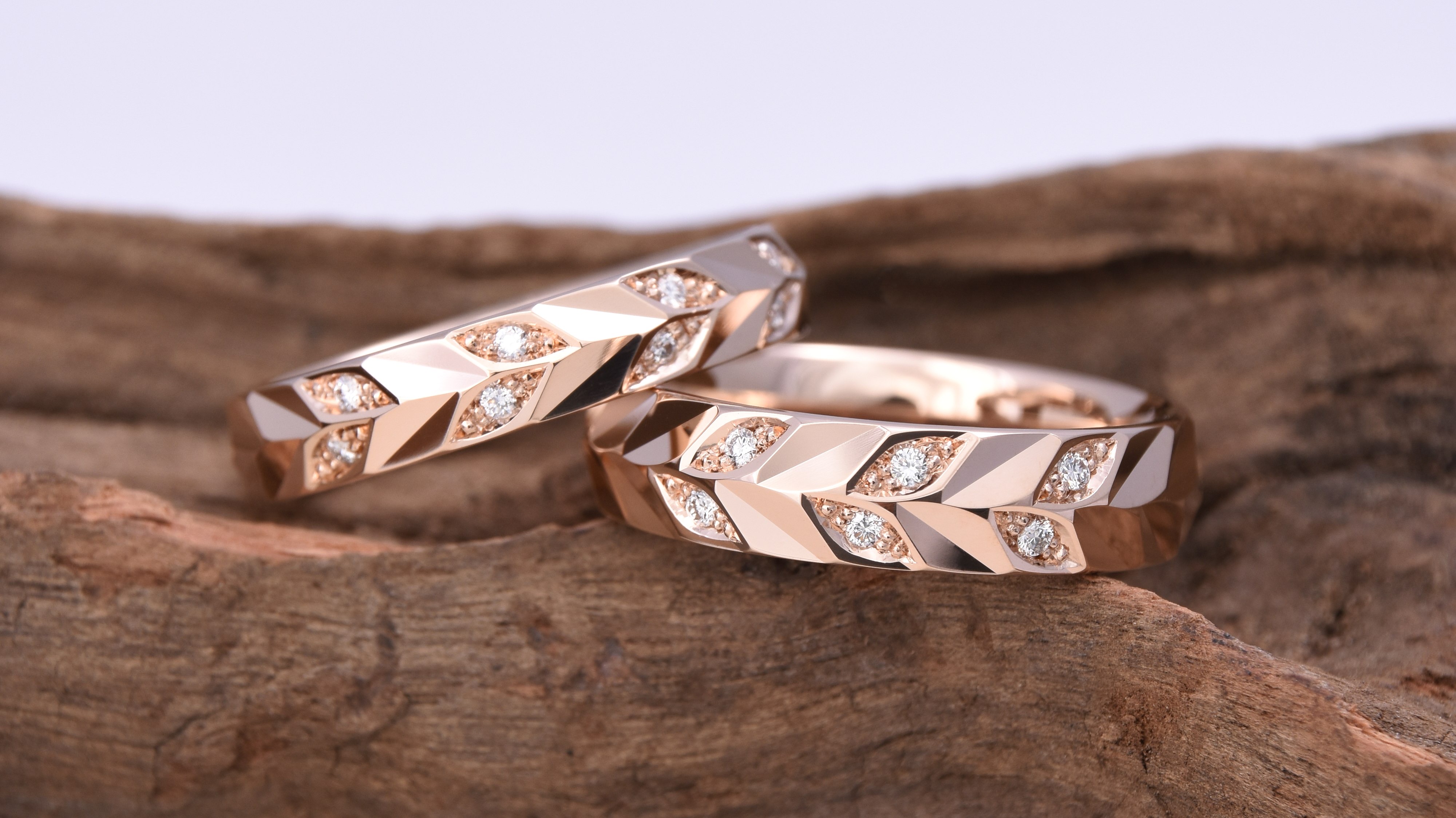 「Morning Glow」系列汲取清晨第一道曙光,溫暖而充滿幸福的靈感,設計巧妙融入金黃色的麥穗紋理與璀璨鑽石,象徵豐收與希望,寓意愛侶攜手迎接璀璨未來,此系列猶如晨曦輕撫過金色麥田,光影交錯間展現愛情的豐盛與耀眼光芒。