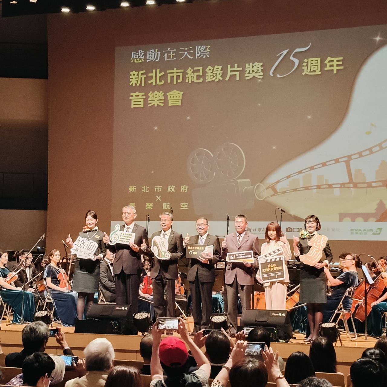 新北市新聞局5月7日攜手長榮航空、長榮交響樂團,以「感動在天際—新北市紀錄片獎15週年音樂會」宣告、