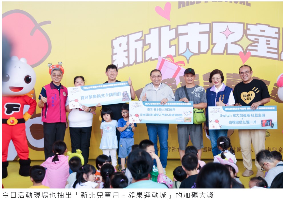 為促進兒童身心健康及強化兒少安全觀念,新北市舉辦「新北市兒童月-兒童安全嘉年華」活動,宣導親子安全知能。新北市長侯友宜今(10)日出席活動,現場與家長及孩童們進行有獎徵答、體驗早療評估闖關遊戲,提醒大家多關心兒童成長情況,用行動展現對孩子們的愛與關懷。