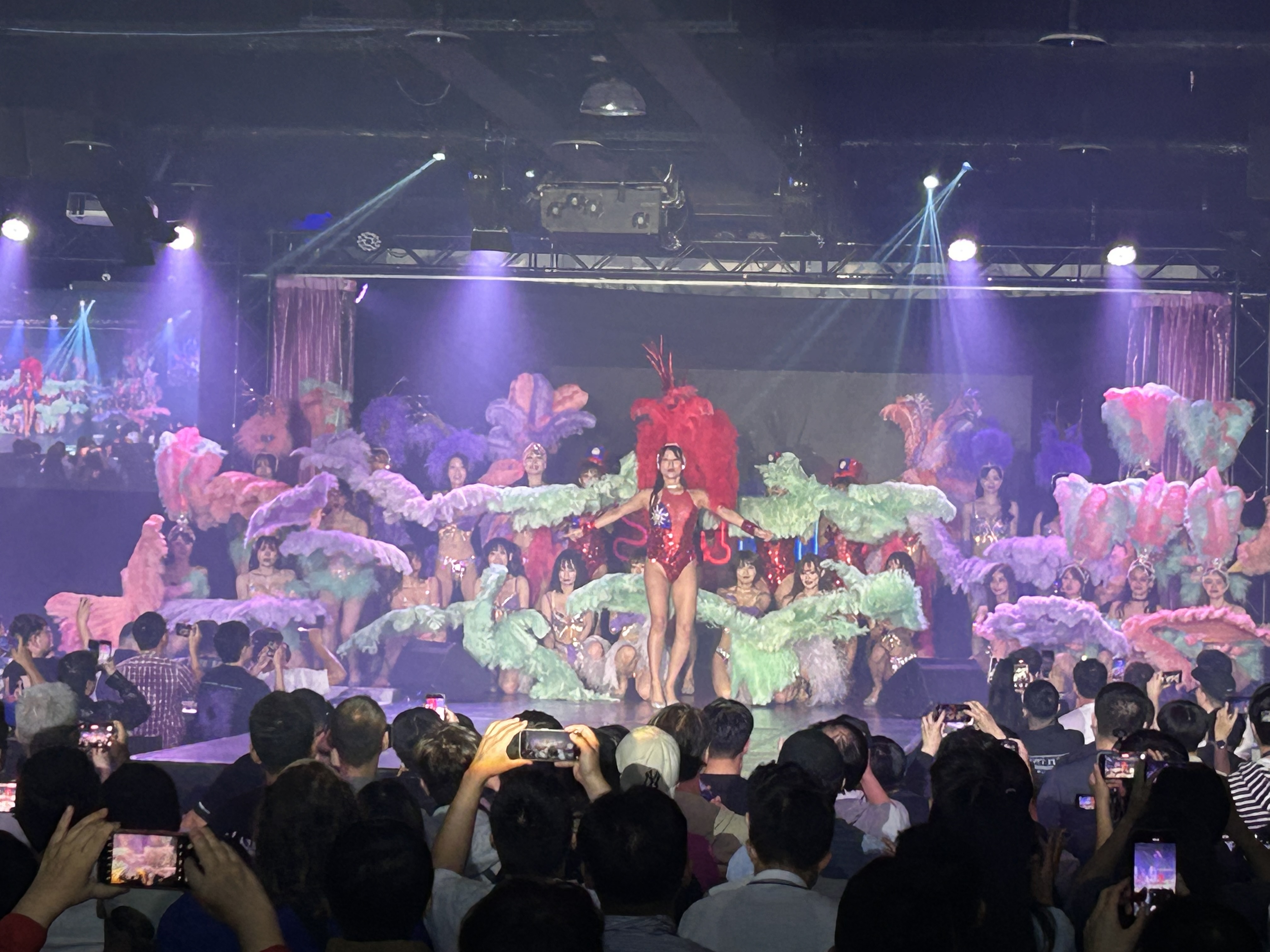 開場即由30位舞者齊登舞台,以融合紅磨坊風格與日式花魁元素的造型震撼登場,搭配強烈節奏與炫目燈光,營造出如夢似幻的派對氛圍。整場演出節奏明快、編排緊湊,從熱力四射的群舞、性感撩人的獨舞,到充滿張力的視覺裝置與互動橋段,無不展現《63 Angel》身為東京指標性秀場的高水準。