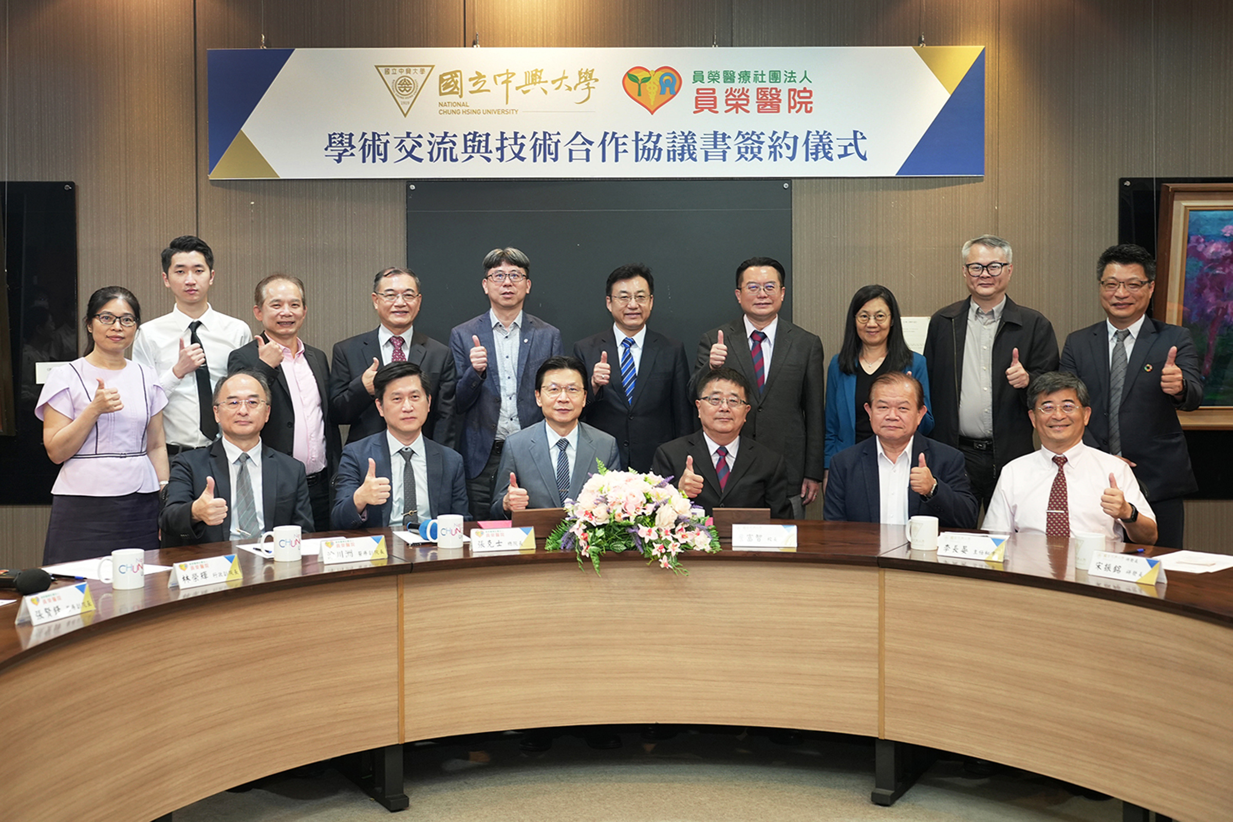 興大詹富智校長表示,興大創校於1919年,是國內歷史最悠久,第三大研究型綜合國立大學,更於2022年成功新設學士後醫學系及醫學院,是中臺灣唯一有醫學院的國立大學。藉由綜合大學多元教學之優勢,與中部重要醫學中心及醫療體系建立長期雙邊合作,共同致力平衡區域醫療資源及偏鄉醫療等工作,履行大學社會責任。興大與員榮醫院,今日簽訂合作協議書,期許雙方未來密切的學術與技術交流合作,創造雙贏局面,共同為學界與醫療界的合作樹立新的里程碑。