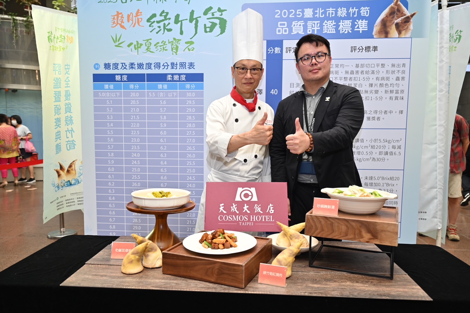 【林文強/台北報導】每年穀雨過後,雨水滋潤的北臺灣山系孕育出晶瑩透亮的「臺北綠竹筍」,脆嫩多汁、纖維細緻,被饕客譽為「仲夏綠寶石」。為深化產地品牌、推廣在地食材,北市府產業局今年再度攜手臺北市農會推出一系列綠竹筍整合行銷活動,包含綠竹筍評鑑、食農教育及採筍體驗等;同時亦與天成大飯店合作,推出綠竹筍主題料理,邀請市民以多元方式品味臺北的夏日風情。