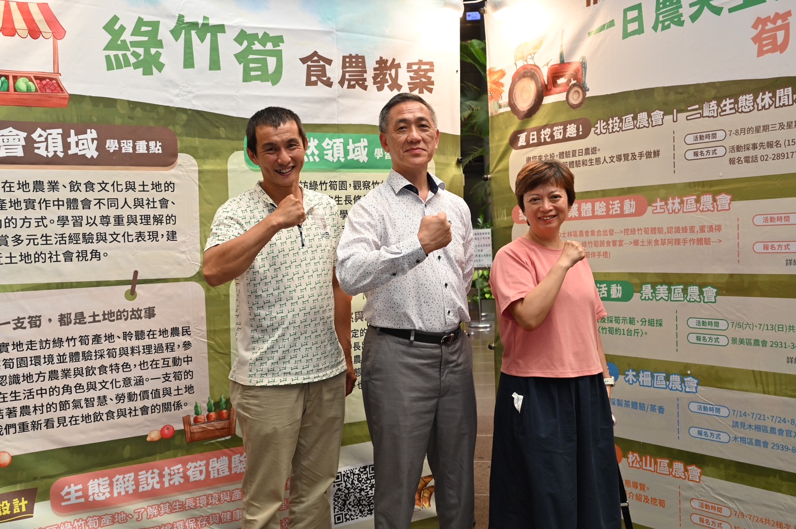 此外,為深化民眾參與,7至8月由北投、士林、景美、木柵、松山等五區農會聯合辦理「採筍趣」活動,邀請民眾走入筍園親手挖筍、體驗簡易料理,感受土地的筍之味。6月28、29日,台北市農會也將在花博農民市集規劃綠竹筍主題攤位,設置互動式模擬採筍體驗及食農教案展示,讓無法上山的市民也能透過實體操作與解說,了解綠竹筍的栽培過程與營養特色,提升對在地農業的認識與支持,共同為臺北市農業注入新活力。