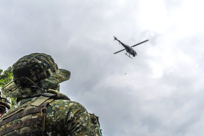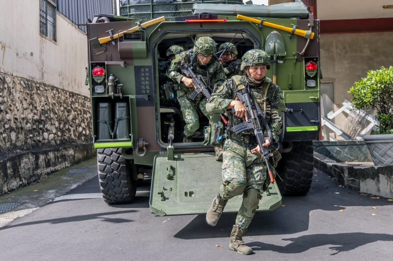 第五作戰區今(16)日於臺中地區實施「要域縱深防禦作戰演練」,模擬敵增援部隊持續突入,守備部隊利用地形、建築物等地障掩護,將敵軍牽制、誘導進入預想殲敵區域,由打擊部隊運用兵、火力進行聯合打擊,拒止、削弱敵有生戰力,在各部隊默契配合下,展現國軍防衛韌性。