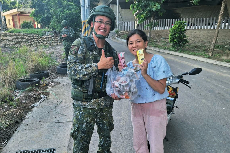 操演完時附近居民路過,請操演官兵吃冰,實踐軍愛民,民敬軍的精神,展現另類的全社會防衛韌性 (圖/十軍團)