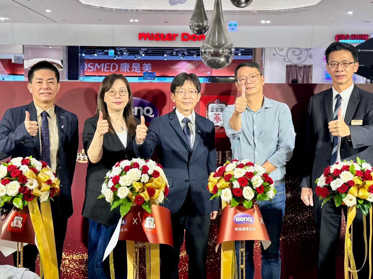 明基健康生活攜手正官庄,遠百A13與松德雙門市正式開幕,右三為明基健康生活總經理沈勝龍、右二為正官庄營運部協理姜威,為新門市開幕剪綵。
