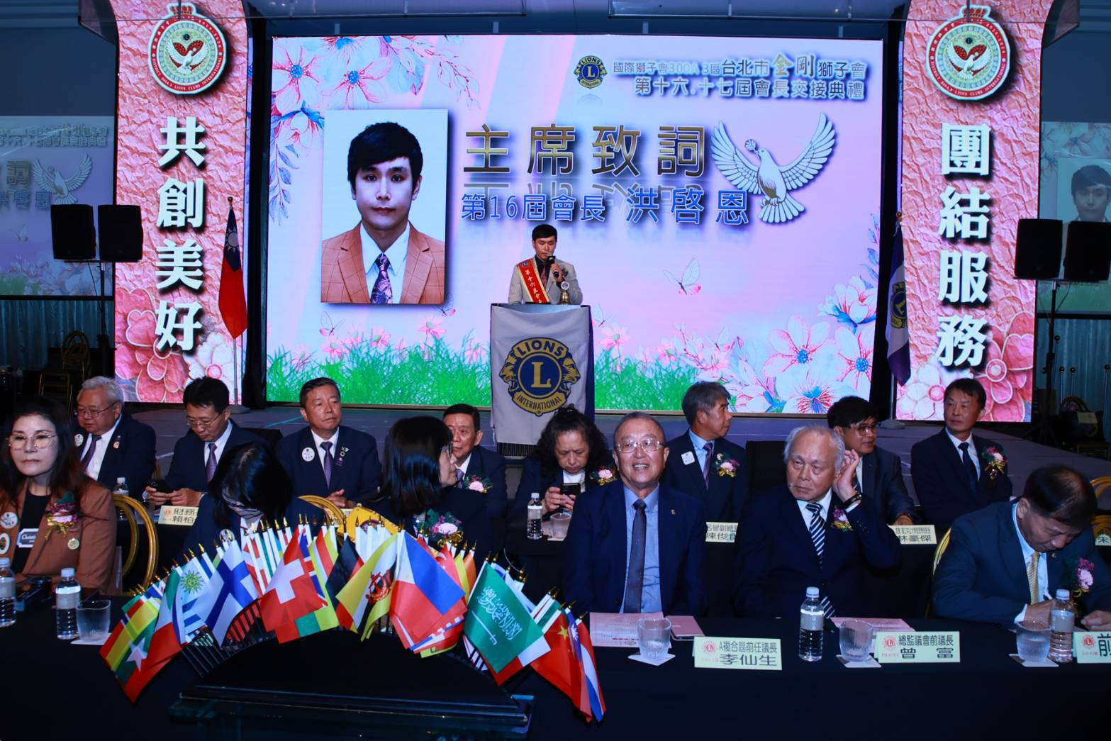 洪啟恩會長的國際獅子會300A3區2024~2025年度會長同學到場一同祝賀與慶祝