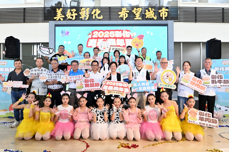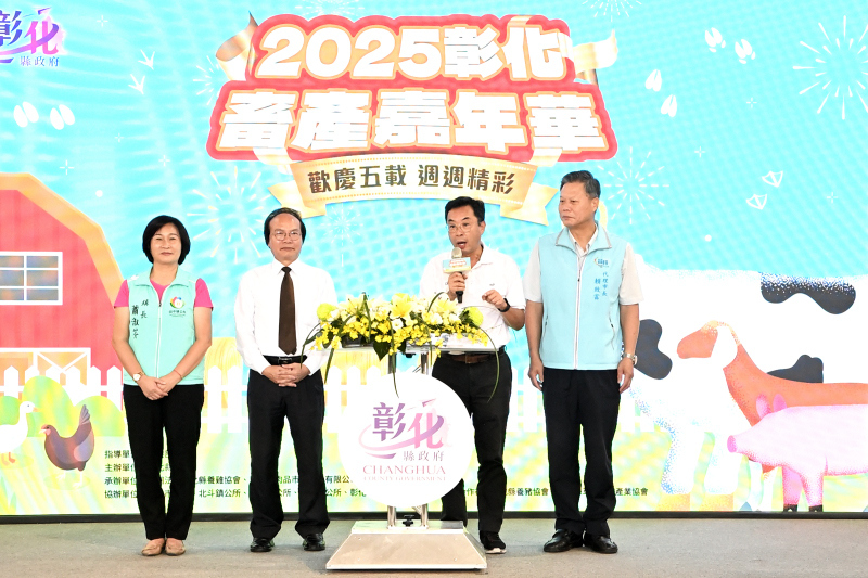 彰化縣為全國重要的畜禽產品產地,為推廣彰化縣優質在地畜禽產品,特別辦理「2025彰化畜產嘉年華-歡慶五載.週週精彩」系列活動,並於今(8/21)日上午在縣府中庭舉辦聯合推廣記者會。王縣長表示,2025彰化畜產嘉年華,結合彰化優質的雞、鴨、羊、牛、豬,自9/7(日)起一連4週共5天,歡迎大朋友帶著小朋友一同來參與,選購彰化優質畜禽產品,讓大家吃得開心、玩得盡興、買得安心。