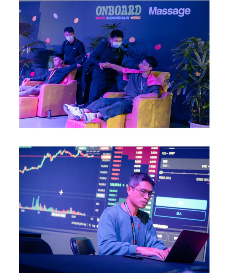 - 鏈上男女的休憩所: 在 Trading Bar Lounge,你可以一邊啜飲特調,一邊與新朋友輕鬆交流市場趨勢;逛累了,就到按摩 & Nail Bar 享受片刻舒壓,為下一個機會努力。