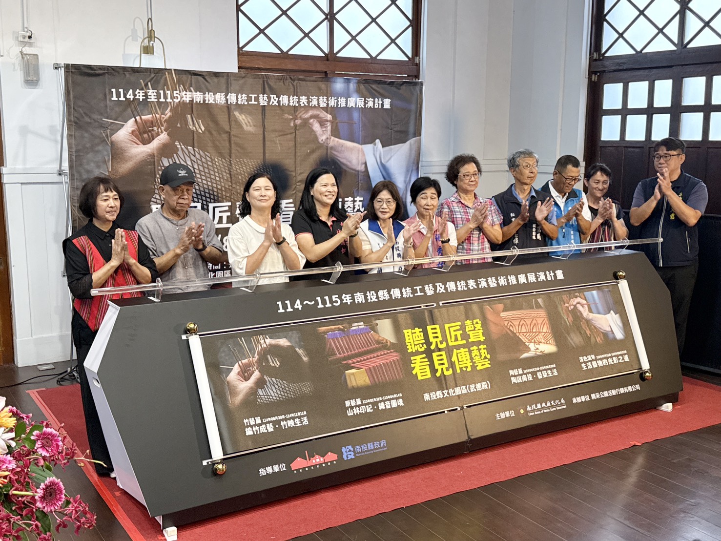 縣府文化局30日在南投縣文化園區武德殿,舉辦「114-115年南投縣傳統工藝及傳統表演藝術推廣展覽計畫-聽見匠聲•看見傳藝」記者會,展演跨足竹藝、織品、陶藝、漆藝四大領域的精品工藝,最大亮點是首度引入AI智慧導覽系統,打造全新沉浸式參觀體驗,提供參觀者在傳統的溫度,與科技的便捷中感受南投工藝的無盡魅力。