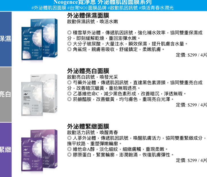 Neogence霓淨思「外泌體肌因面膜系列」全新上市