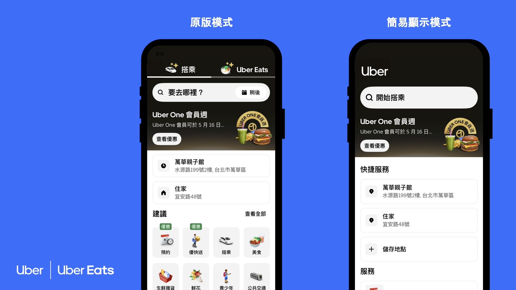 日前平台針對 13 至 17 歲青少年族群推出「Uber 青少年版」與「Uber Eats 青少年版」,讓家長可以更安心叫車與點外送。而台灣將在 2025 年進入超高齡社會,Uber 關注年長者族群需求,宣布「Uber 年長者帳戶」與「簡易顯示模式」正式上線。透過「Uber 年長者帳戶」,家庭帳號管理人可協助長輩即時預約和管理行程、支付行程費用,並透過 Uber App 的安全科技功能追蹤行程、聯繫駕駛,讓乘車體驗更安心可靠。年長者亦可開啟新推出的「簡易顯示模式」,使用放大的文字與圖示簡化操作介面,省時省力,輕鬆叫車。