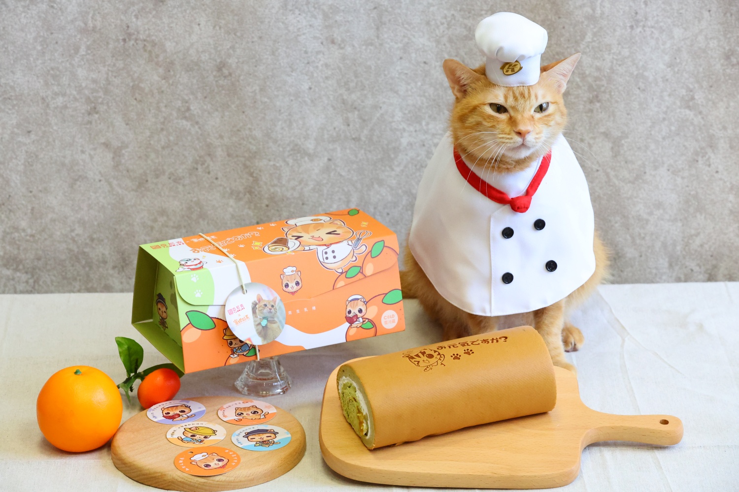 亞尼克與蜜柑站長一起把「元氣蜜柑生乳捲」變成幸福的驚喜盒,生乳捲不僅烙印上蜜柑站長全台獨家應援「お元気ですか」圖樣,可愛的貓腳印可是採自本喵真實肉墊;外盒、吊牌集合蜜柑站長成長日記從baby、幼兒園、小學到國中出任站長的暖萌圖樣,內盒還有蜜柑站長寫給柑仔蜜的調皮悄悄話,隨盒附贈蜜柑成長日記小卡兩張,背面還是本喵呆萌寫真,4款圖樣隨機出貨,看了讓人秒融化,等著柑仔蜜們一起暴動搶珍藏。