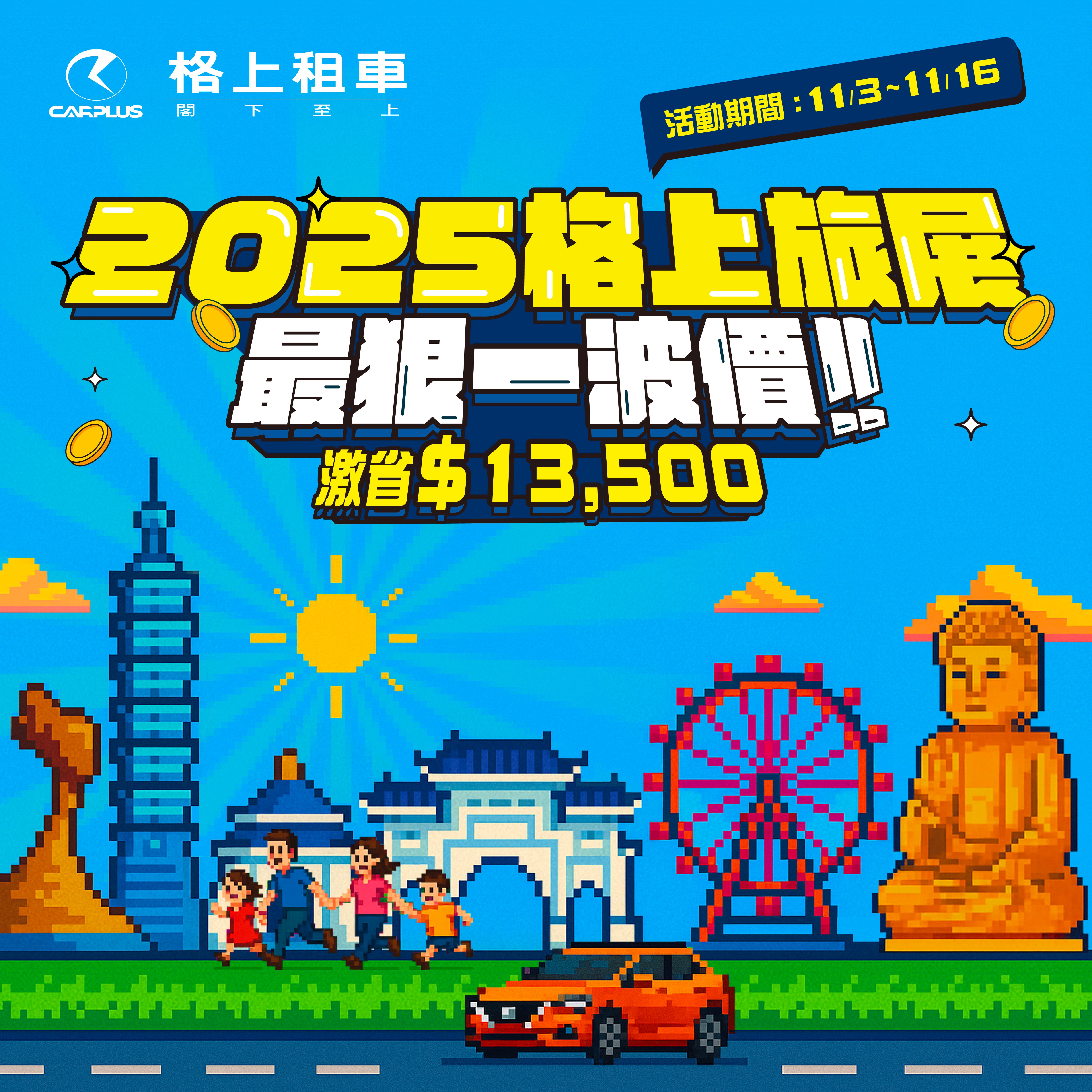 【林文強/台北訊】 年度旅遊盛事「ITF台北國際旅展」即將登場,適逢政府普發的一萬元現金入帳,正是民眾規劃出遊、聰明消費的最佳時機。格上租車響應旅遊熱潮,於 11月3日起至11月16日 強勢推出「線上旅展」,提供超值的日租車與Go Smart共享車票券,最高可現省 13,500元,助您放大每一分旅遊預算,將省下的費用轉換為旅途中的美好回憶。