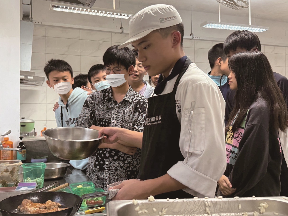 開平餐飲學長姐在示範說明過程中的職人態度,讓國中生更具備進入技職學習的想像。開平餐飲學校/提供