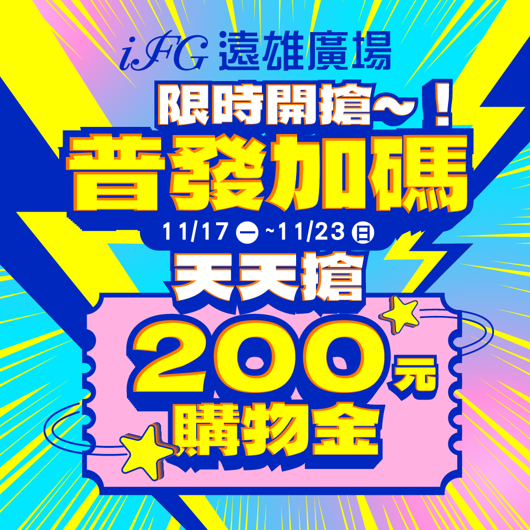 圖說:iFG遠雄廣場於11月17日至11月23日限時七天推出「200元指定櫃位購物金」活動。