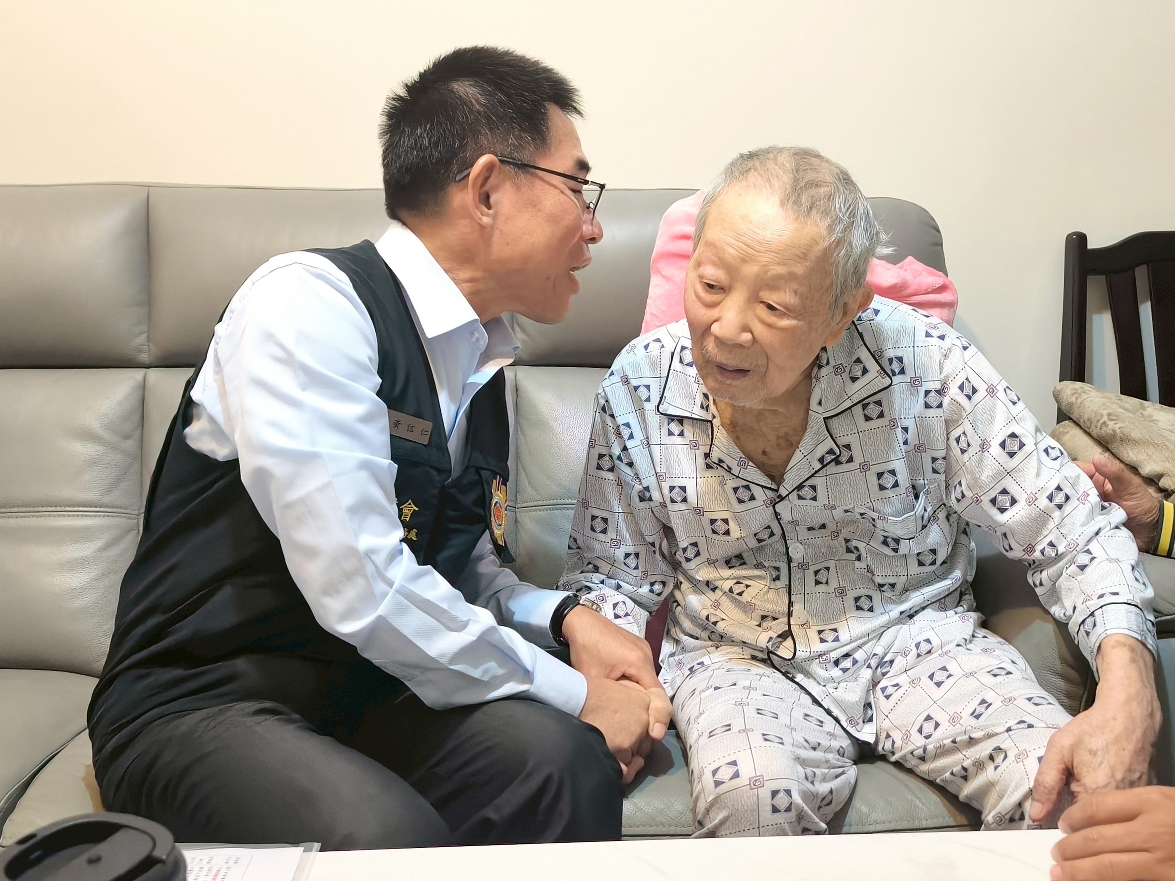 為推動「安心御老平台」照護試行成效,臺北市榮民服務處處長黃信仁於(18)日親率總幹事葛得生、責任區輔導員及社區服務組長,分赴信義區與文山區訪視納入該處試辦個案的方伯伯等4位高齡92至101歲的榮民長輩,實地瞭解平台執行情形與近期長輩生活照顧現況,以作為明年起全面推廣的參據。