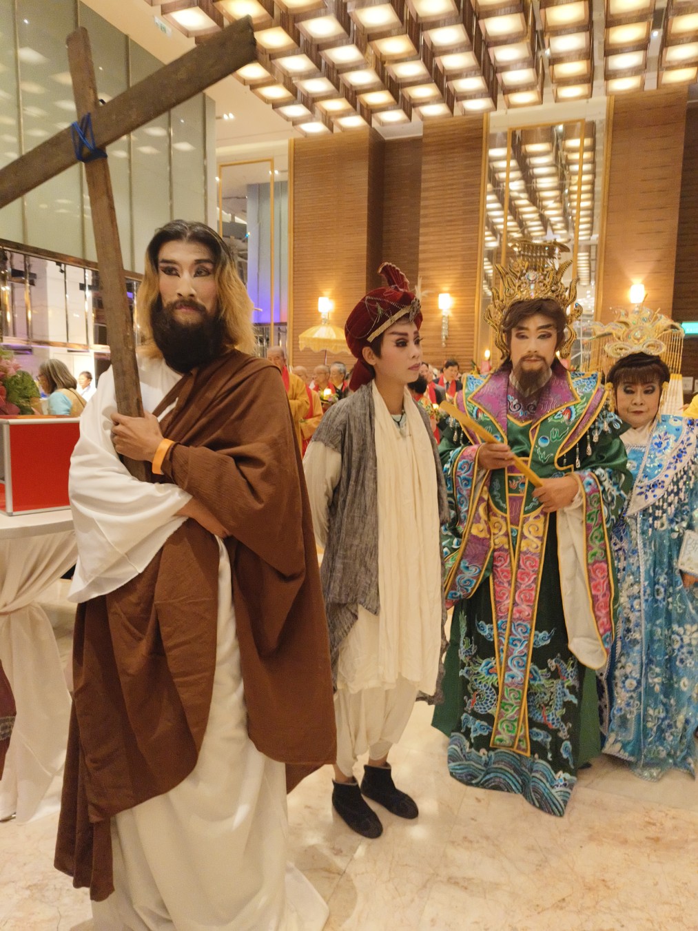演員裝扮各式教派神尊的化身。(攝影/蔡昀臻拍攝)