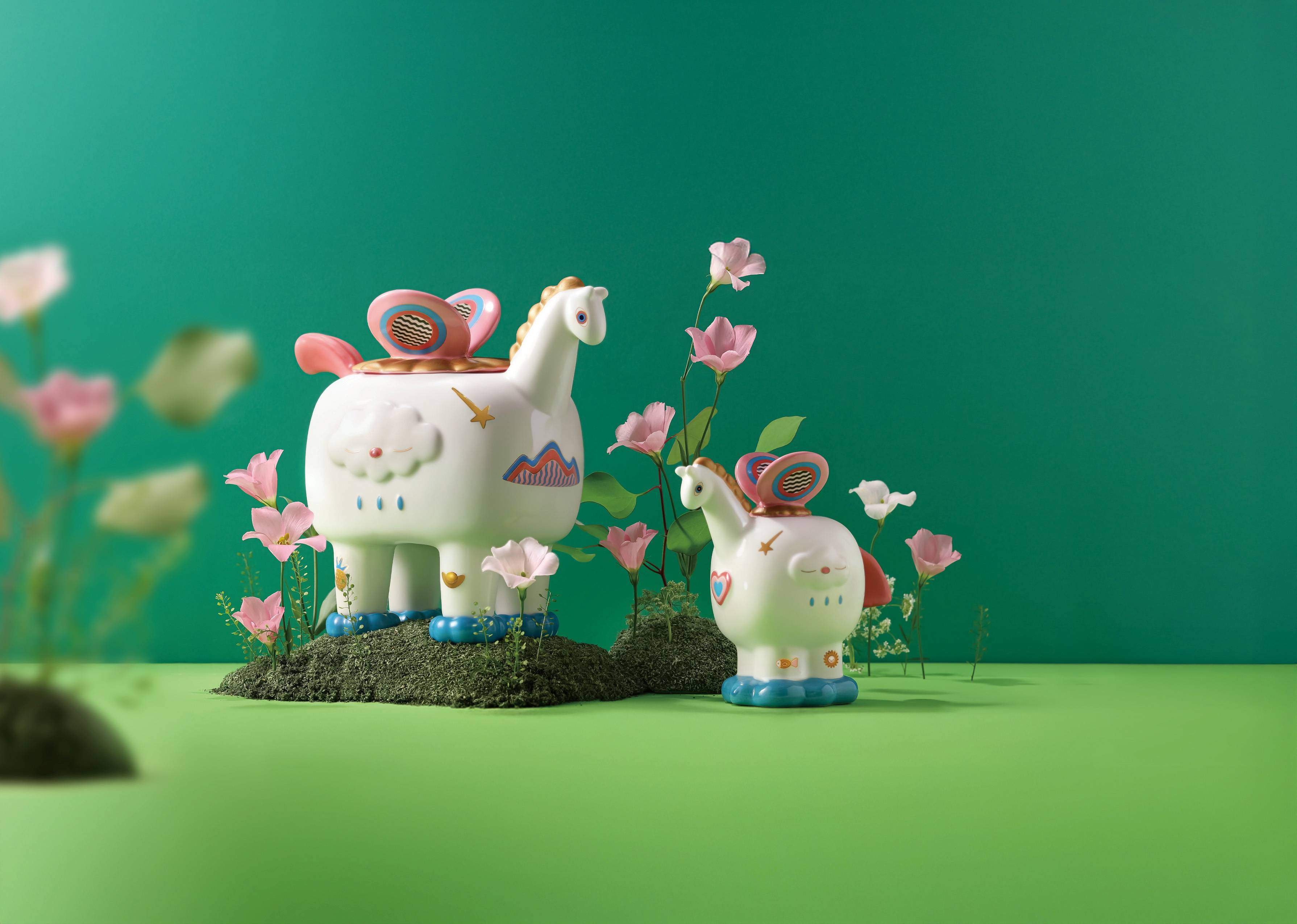 圖說:Rivon禮坊隆重推出與台灣新銳藝術家吳騏(57)聯名的限量「旺福馬」瓷器禮盒,以「在地永續,幸福延續」為創作發想,搶攻馬年藝術禮盒市場。 (Rivon禮坊提供)