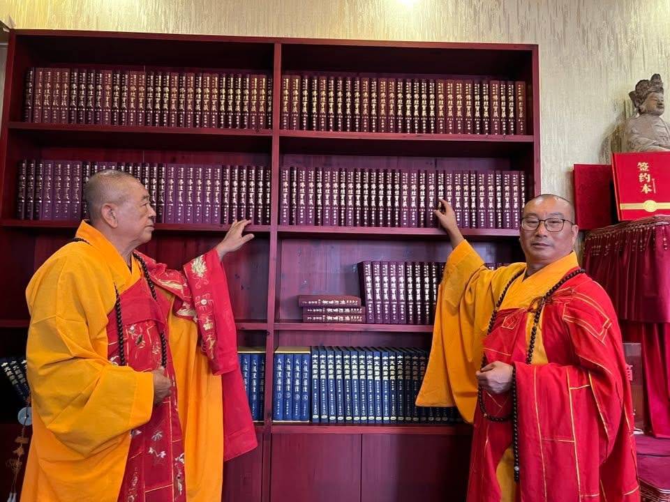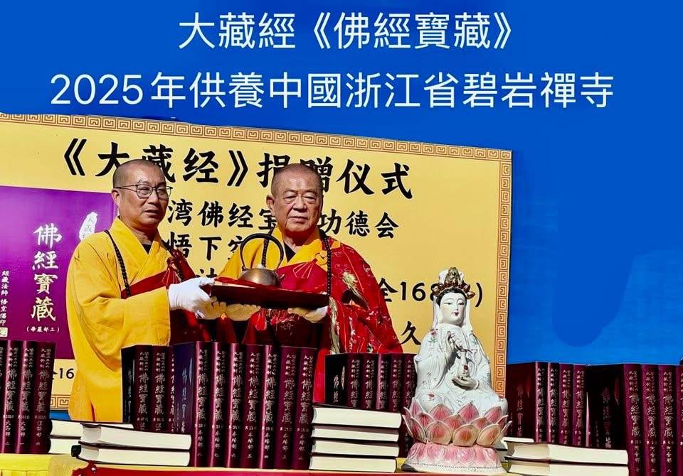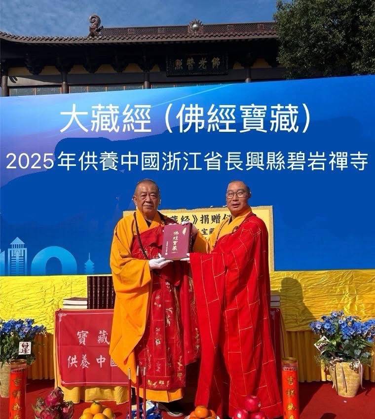 十一月二十日至二十六日大中華全球佛經寶藏功德會、台北市重閣講堂悟空長老專程第一次供養全球唯一重新出版、放大字體「佛經寶藏」大藏經一套178冊到浙江