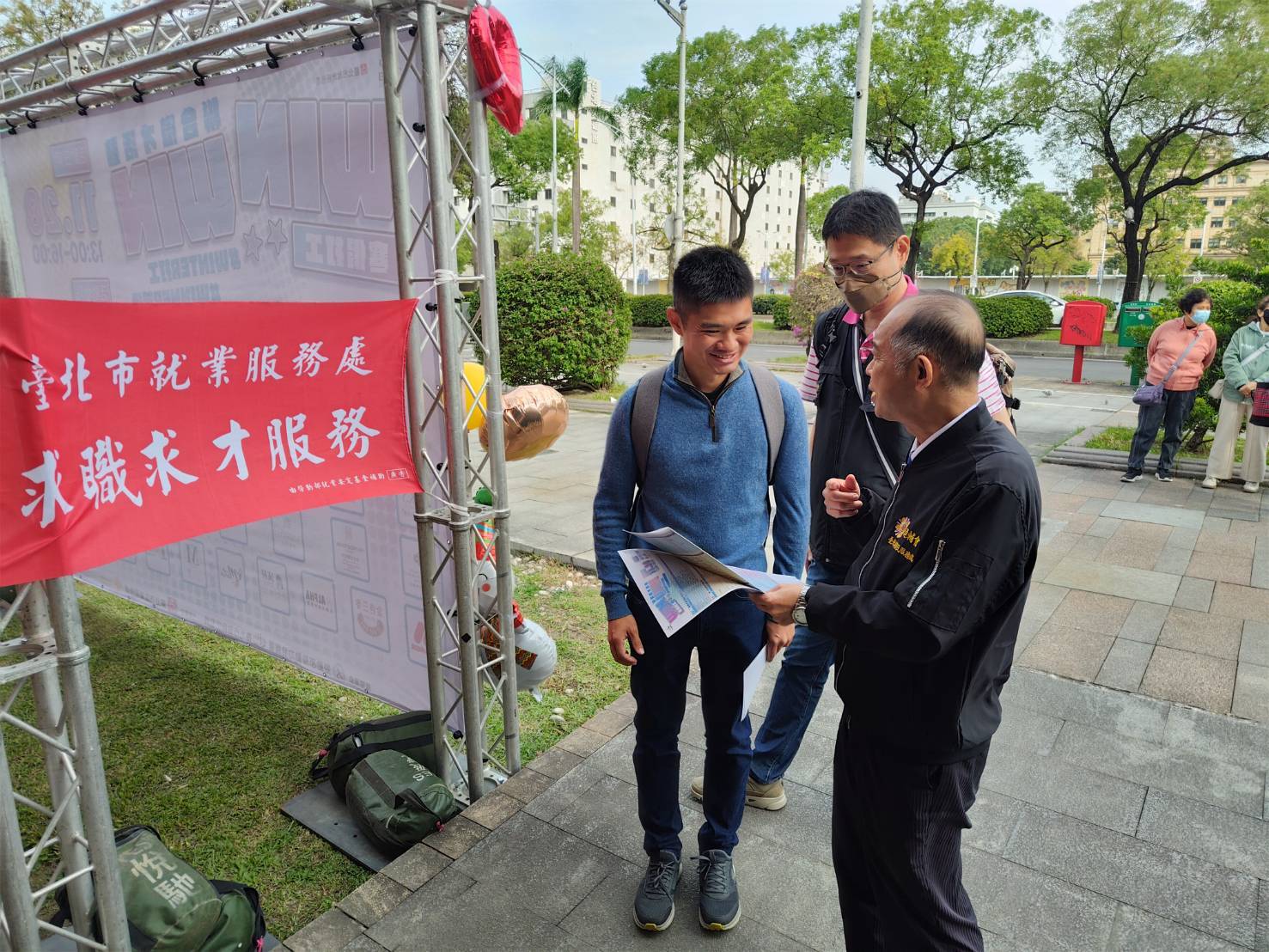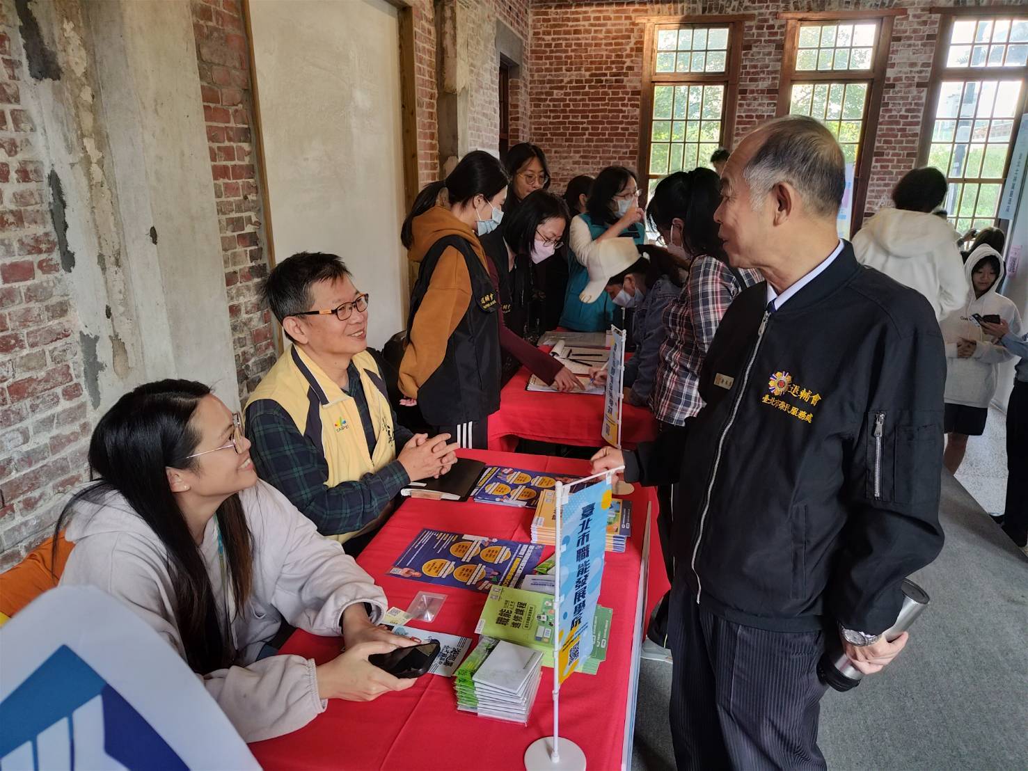 為落實輔導會協助退除役官兵順利銜接民間職場、拓展職涯路徑,臺北市榮民服務處(28)日,參與臺北市就業服務處於臺北市立文獻館樹心會館舉辦之「WIN WIN 寒假打工」聯合徵才活動,現場邀集25家優質企業,提供逾千個職缺,包括餐飲、住宿、服務業及技術類等,時薪最高可達336元。長期職缺方面,也有正職機會,部分企業月薪上看7 萬元,為求職者提供極具競爭力的待遇。現場氣氛熱絡,求職的退除役官兵均表示感謝輔導會促進榮民就業的各項政策,以及市政府、榮服處的用心推廣,攜手打造最佳的就業媒合平台。