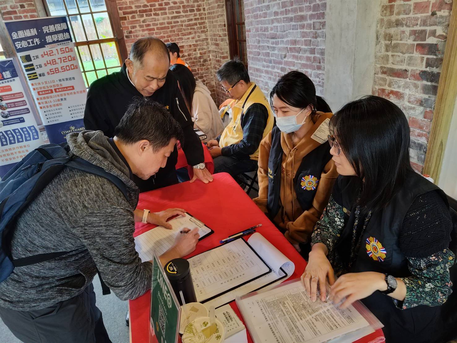 前來求職的退除役官兵林先生表示,參加此徵才活動,不僅提供待業期間打工機會,也為有意兼職或正職轉換的退除役官兵與其眷屬,開啟更多就業管道。榮服處在現場設置的攤位,提供就業輔導、履歷修改建議,以及退除役官兵就業資源介紹等服務,協助他們與廠商建立高效對接,更容易通過面試,獲得理想的工作。