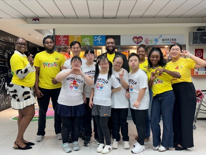【記者吳明憲 / 台北報導】聖克里斯多福及尼維斯聯邦駐台大使范東亞 (H.E. Ambassador Donya Lynex Francis) 上周偕同大使館人員與在台留學生一行六人,特別前往由唐氏症基金會設立的「明倫工坊」參訪。大使此行不僅與唐寶寶及身心障礙青年面對面交流,更深刻感受基金會長期投注於障礙者支持服務的成果。踏入明倫工坊的瞬間,大使范東亞以親切笑容與孩子們熱情互動,迅速拉近彼此距離。唐寶寶們早已準備好一段充滿活力的開場舞,隨著音樂節奏盡情舞動。每一個舞步、每一個笑容都真摯動人,將現場氣氛推向溫暖、歡樂且感人的瞬間。這份純粹而直接的熱情,也深深感染了大使及其隨行團隊。