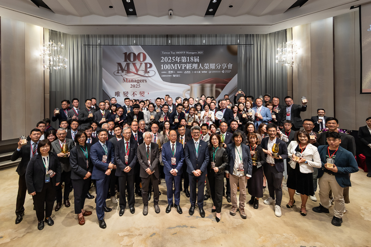 歐德集團執行長陳國偉出席2025第18屆《100MVP經理人》頒獎典禮,與全體得獎者合影留念。