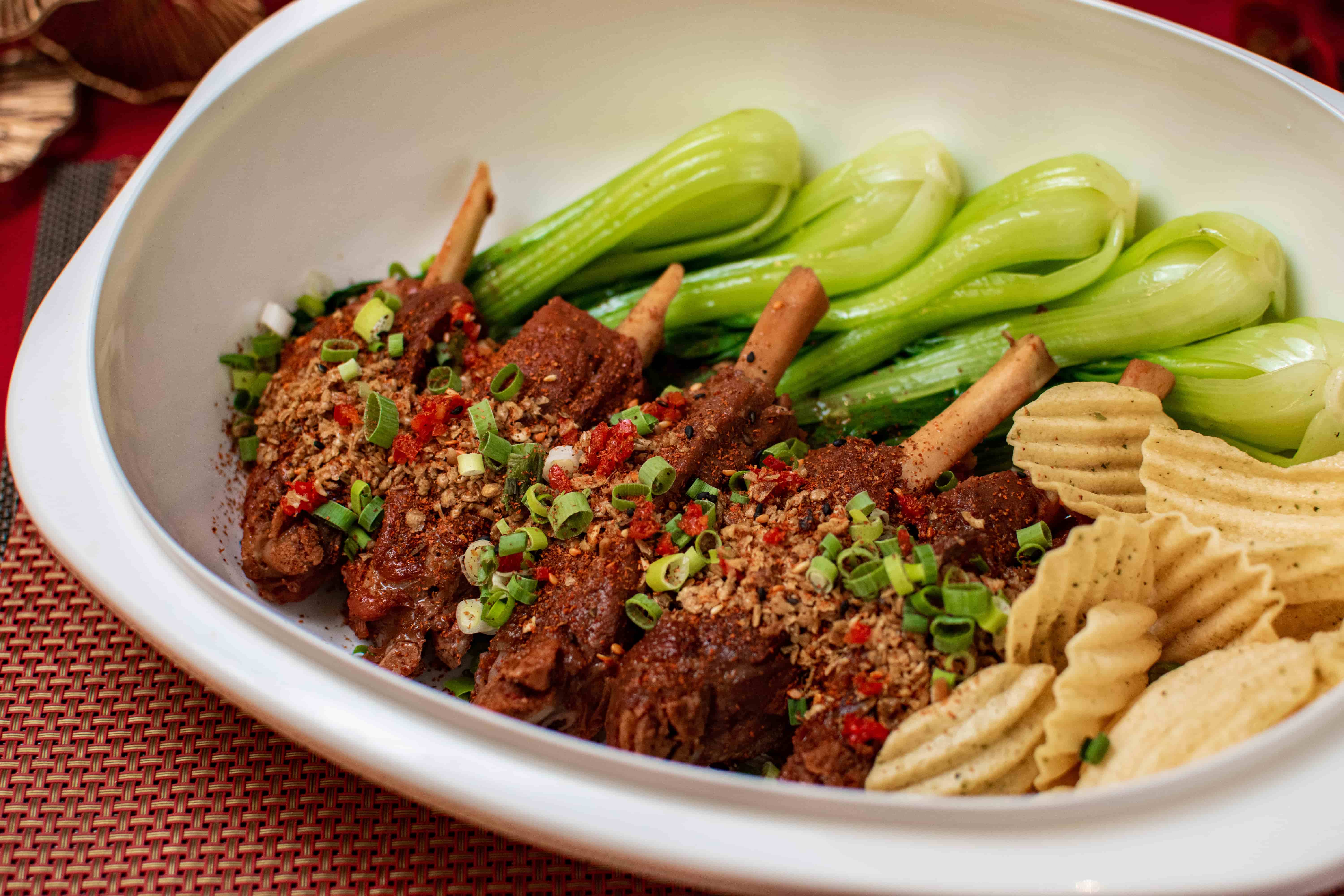 年菜外帶套組內容豐富澎湃,主廚以年節吉祥寓意為靈感精心設計,包含集結三樣前菜的「福祿壽歡喜拼盤」,寓意滿滿的開運前菜,以蒜苗烏魚子、醉翁雞腿、和風日月貝,三味開啟佳節序幕,迎來新年好兆頭;以鮑魚、上湯慢火燉煮的「鮮鮑花膠佛跳牆」,湯頭濃郁醇厚、料足香厚,象徵圓滿豐收;肉質細緻鮮甜的「古法油醋貴妃魚」嚴選鮮嫩鱸魚,以秘製油醋淋香,寓意年年有餘;「椒鹽蒜香豚仔骨」金黃香酥的豚仔骨裹上 蒜酥與七味粉,鹹香夠勁深受大人小孩喜愛;最後搭配香氣十足的「海皇明蝦薑黃飯」,鮮甜草蝦佐薑黃飯與濃郁海皇醬,讓人回味無窮。