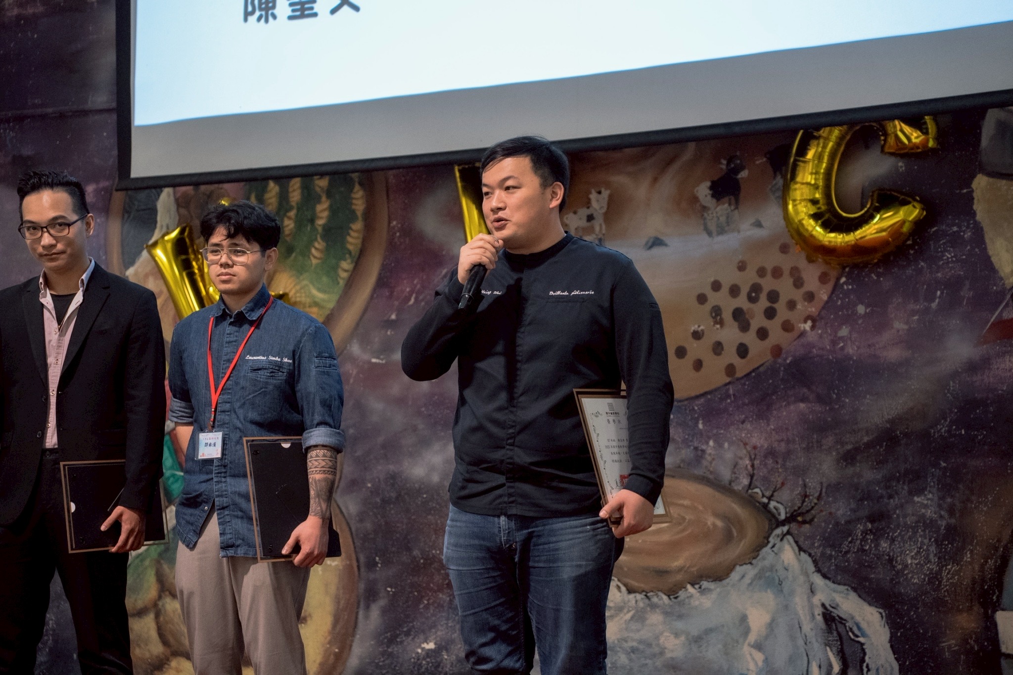 今年以巧克力潘納朵尼於國際賽事中獲獎的陳星緯主廚,近期與法國最佳工匠MOF及世界級潘納朵尼大師合作,將法、義節慶經典風味引進臺灣門店,持續拓展消費者體驗頂尖職人手藝的機會。校慶當日恰逢聖誕檔期前夕,凌晨仍忙於大量訂單準備的他,還是特地返校參與盛會,不僅接受榮耀,也期許傳承經驗。陳星緯分享,在開平餐飲的求學歷程對其影響深遠,「不只是技術的養成,更重要的是對品質與細節的堅持。」他也鼓勵學弟妹,烘焙並非追求速度的產業,而是仰賴基本功的累積與持續學習的態度,其職涯歷程正是最佳示範。