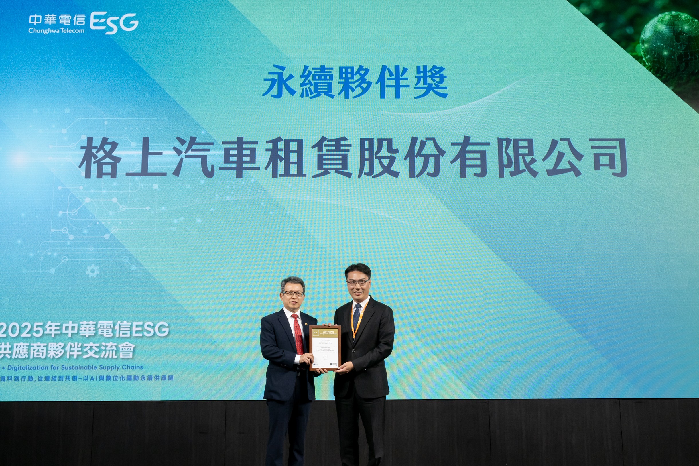 此次獲頒中華電信金級供應商認證,格上租車積極配合中華電信推動的永續供應鏈管理制度,導入外部第三方查驗、ESG 標準化管理流程與碳排盤查,確保各項營運、車隊管理與產品服務皆符合法規及國際永續準則。格上租車體認供應鏈的永續韌性來自企業間的共同投入與合作,而金級認證更代表格上租車不僅做到「符合法規」,而是「超越要求」的企業永續夥伴。