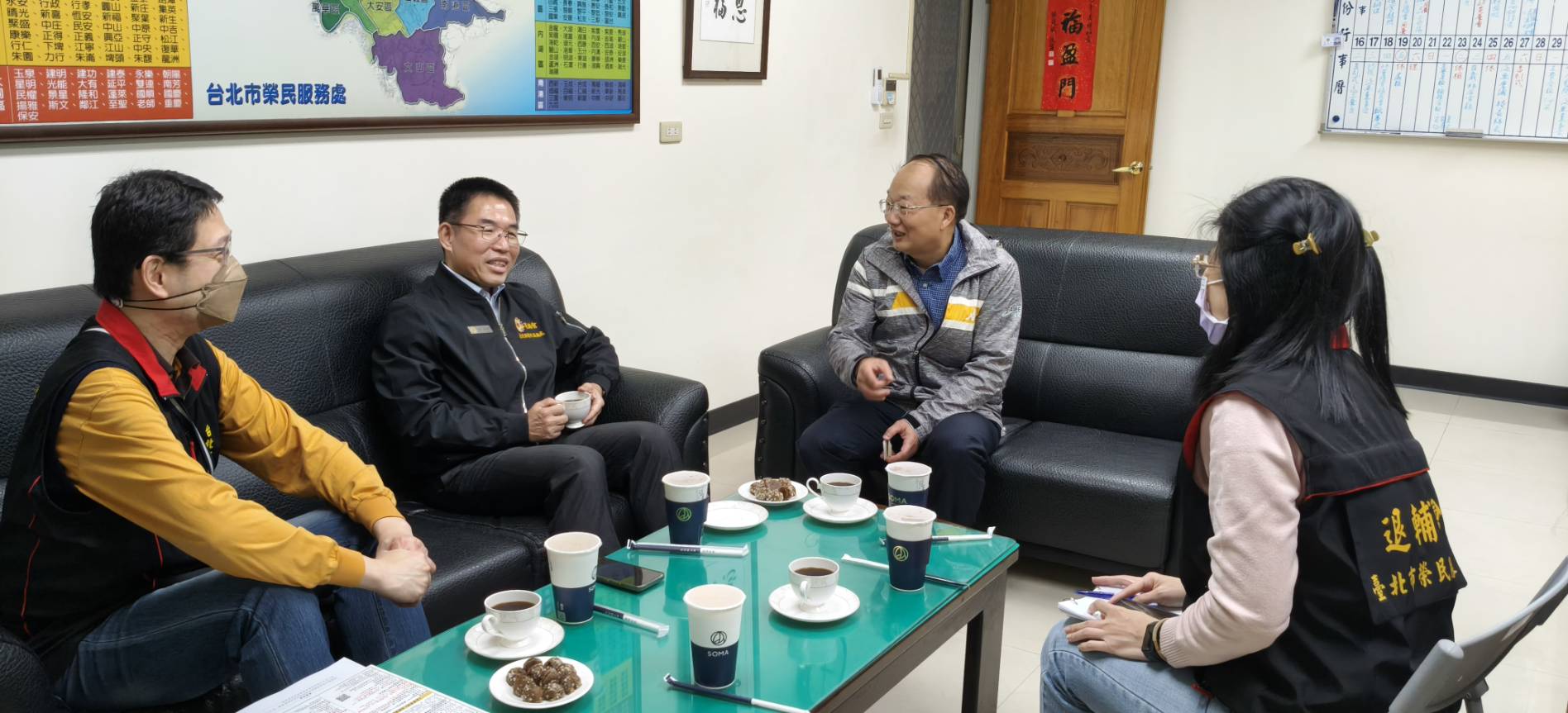 為拓展退除役官兵升學、就業平台,臺北市榮服處處長黃信仁邀請國立臺北科技大學黃有評教授,(26)日到處研討,深入瞭解雙方就學就業機會與資源,共同攜手協助退除役官兵升學,培養專業知能,提升未來職場競爭力,另黃教授利用於閒暇之餘,拍攝臺灣常見鳥類,製作成精緻月曆贈送該處。