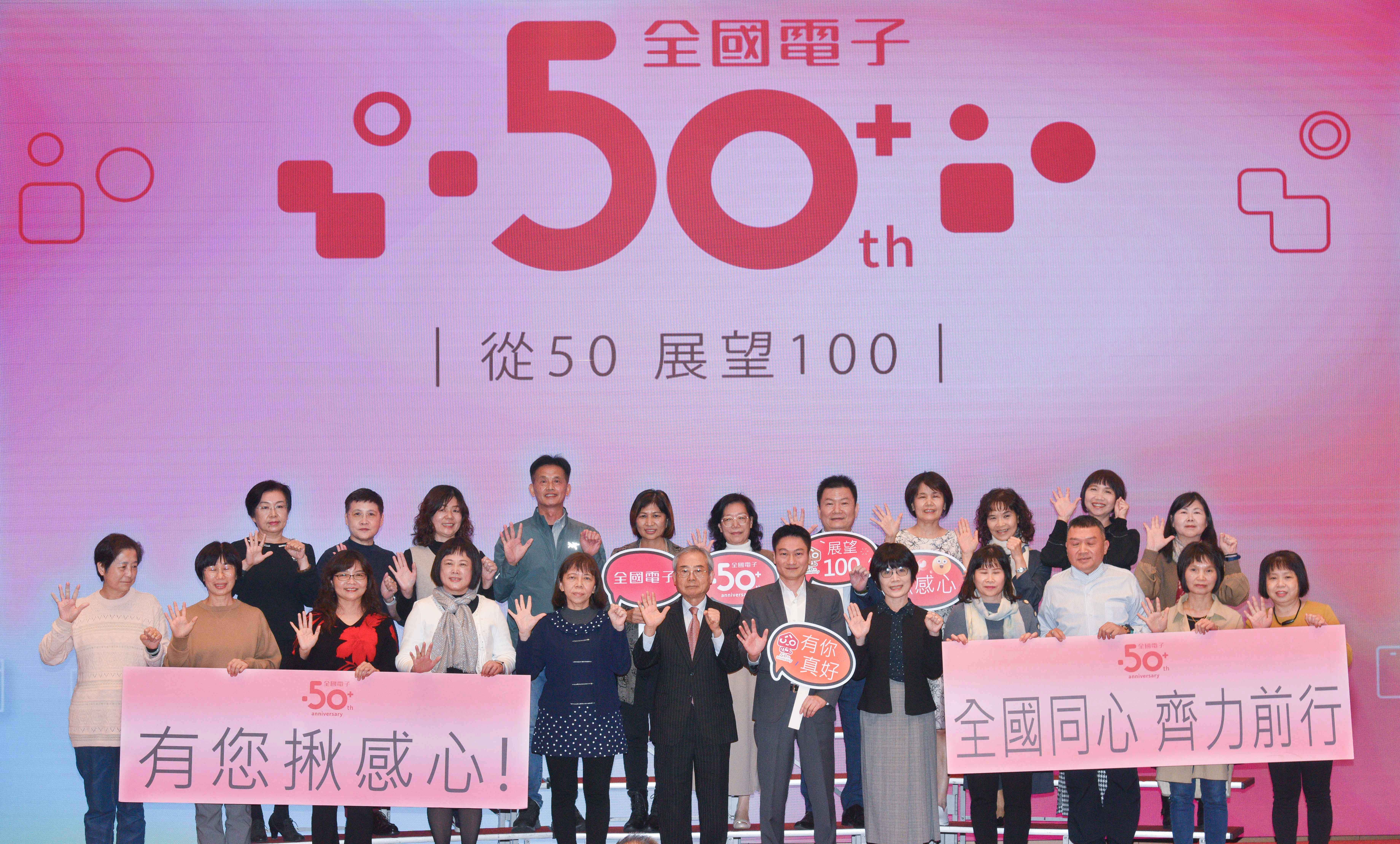 全國電子創辦人林琦敏與現任董事長林政勲,在50週年慶祝午宴會活動現場,對這一路走來鼎力支持的廠商與合作夥伴,以及日以繼夜為消費者提供感心服務的資深員工們,致上最大的感謝,一起攜手邁向下個更精彩的50年。