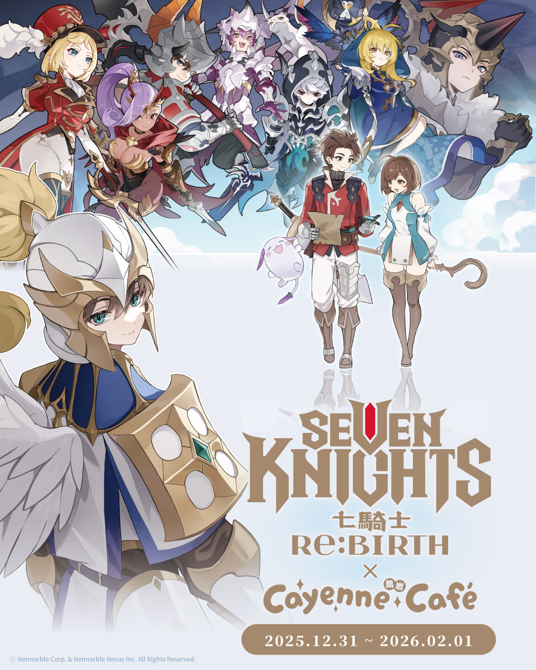 Netmarble 旗下承載全球玩家共同回憶的經典角色扮演遊戲《七騎士Re:BIRTH》首度攜手凱岩主題餐廳 Cayenne Café,推出橫跨跨年的限定主題店!活動將於 2025 年 12 月 31 日正式開幕,至 2026 年 2 月 1 日止,讓冒險者們能在歲末年初之際,透過美食與英雄們於聖域中團聚。