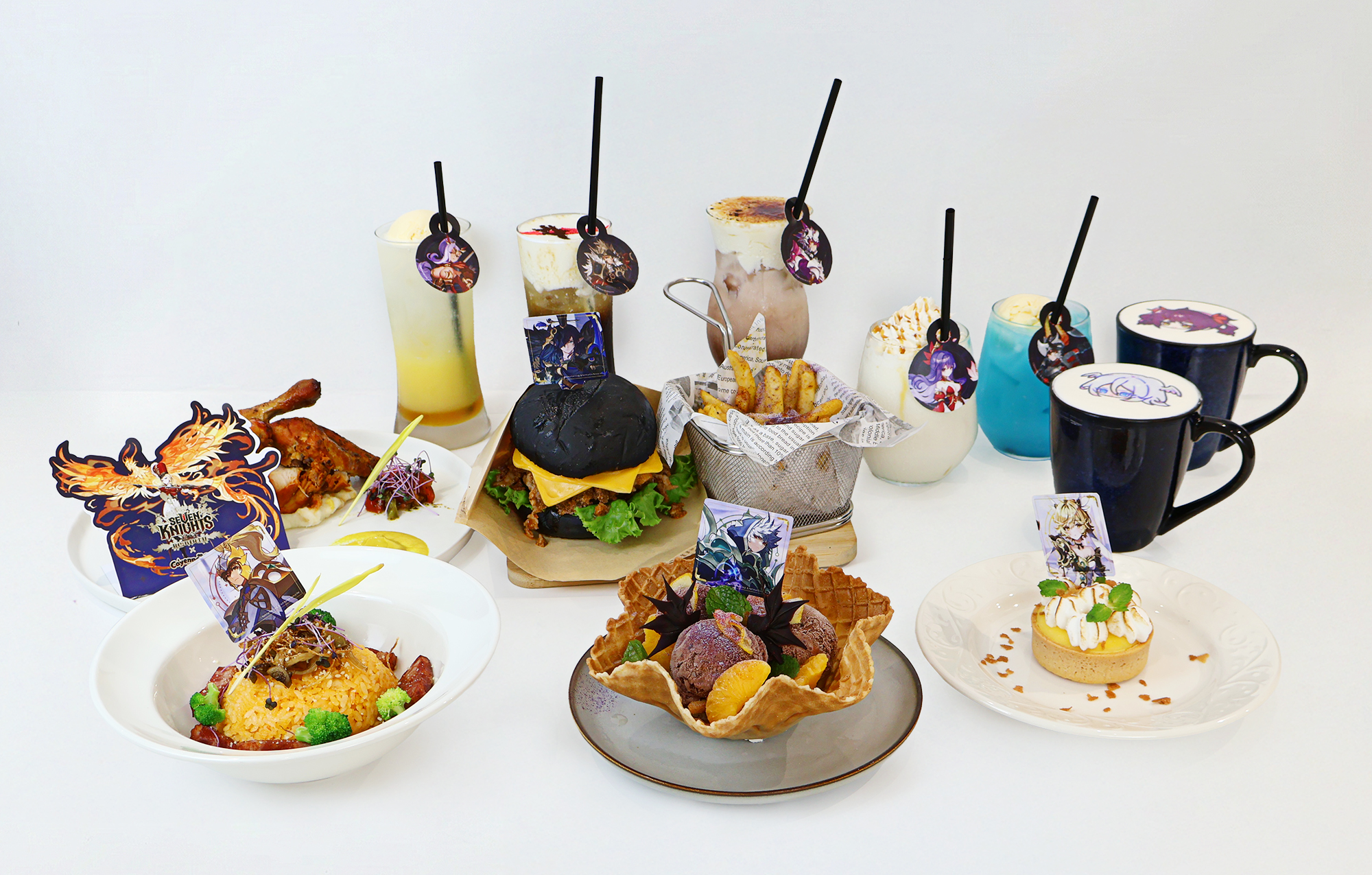 本次聯名除有精心設計的三款主餐、兩款甜點及五款特調飲品與大受歡迎的拉花奶蓋,更結合深度的沉浸式空間佈置與豐富限定活動、周邊等,喜愛七騎士的玩家們絕對不能錯過!