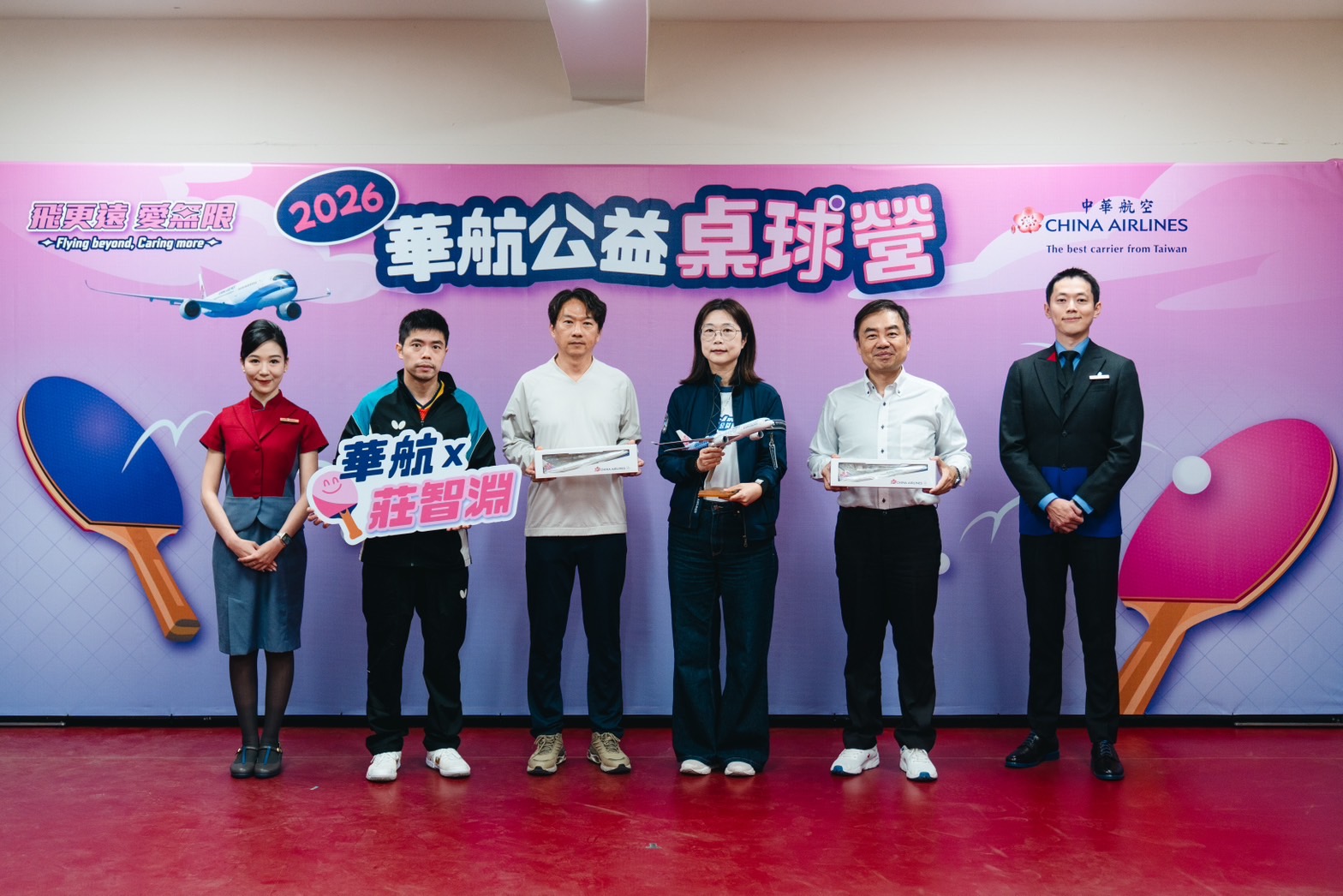 中華航空於今 (5) 日開年之際,三度舉辦公益桌球營,首次移師彰化,由資深副總經理羅雅美開訓,邀請台灣桌球教父莊智淵親臨指導,陪伴在地學童揮拍學習,以運動為新的一年注入正向能量,也為孩子們種下勇敢追夢的希望,藉由公益行動揭開熱血序幕。