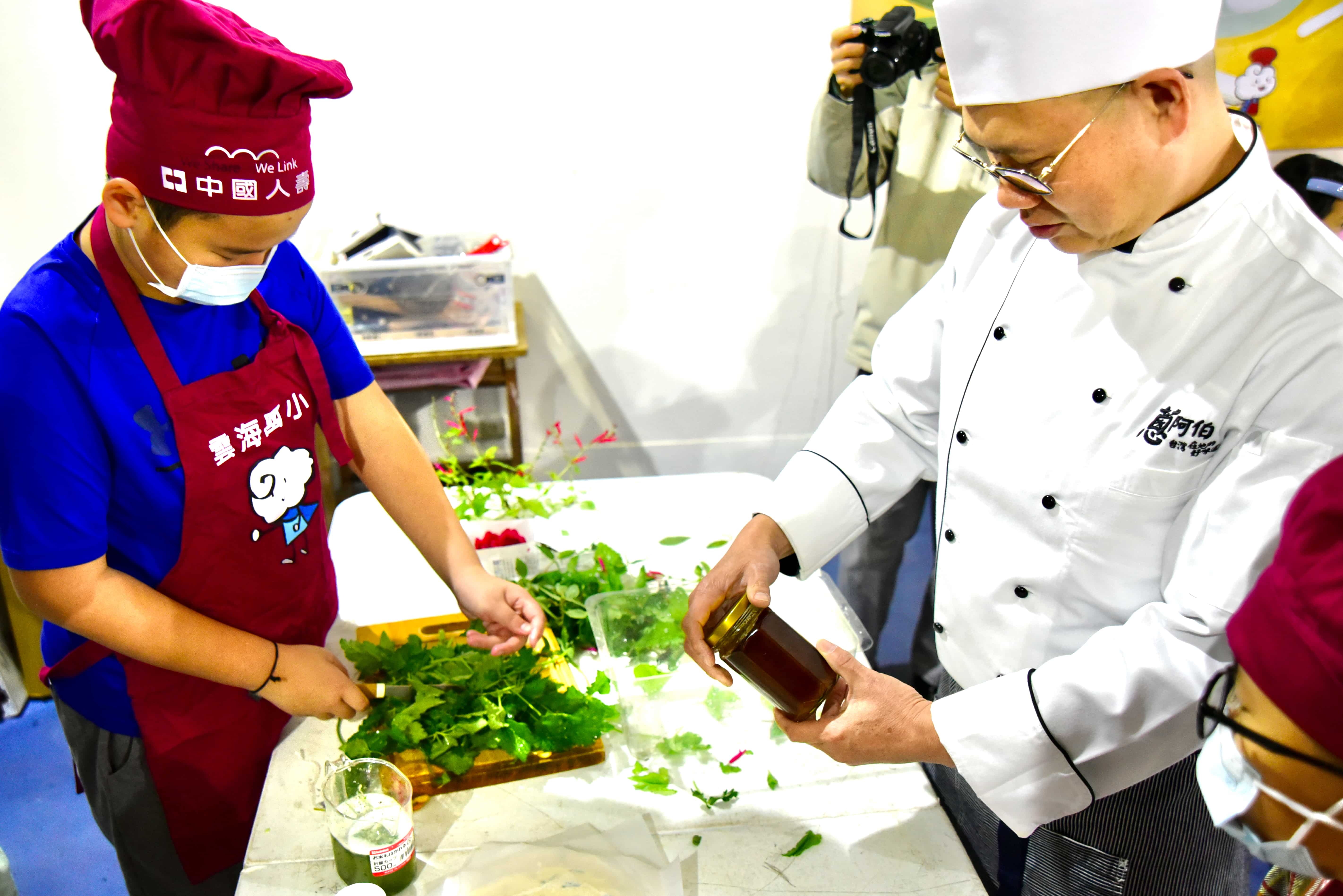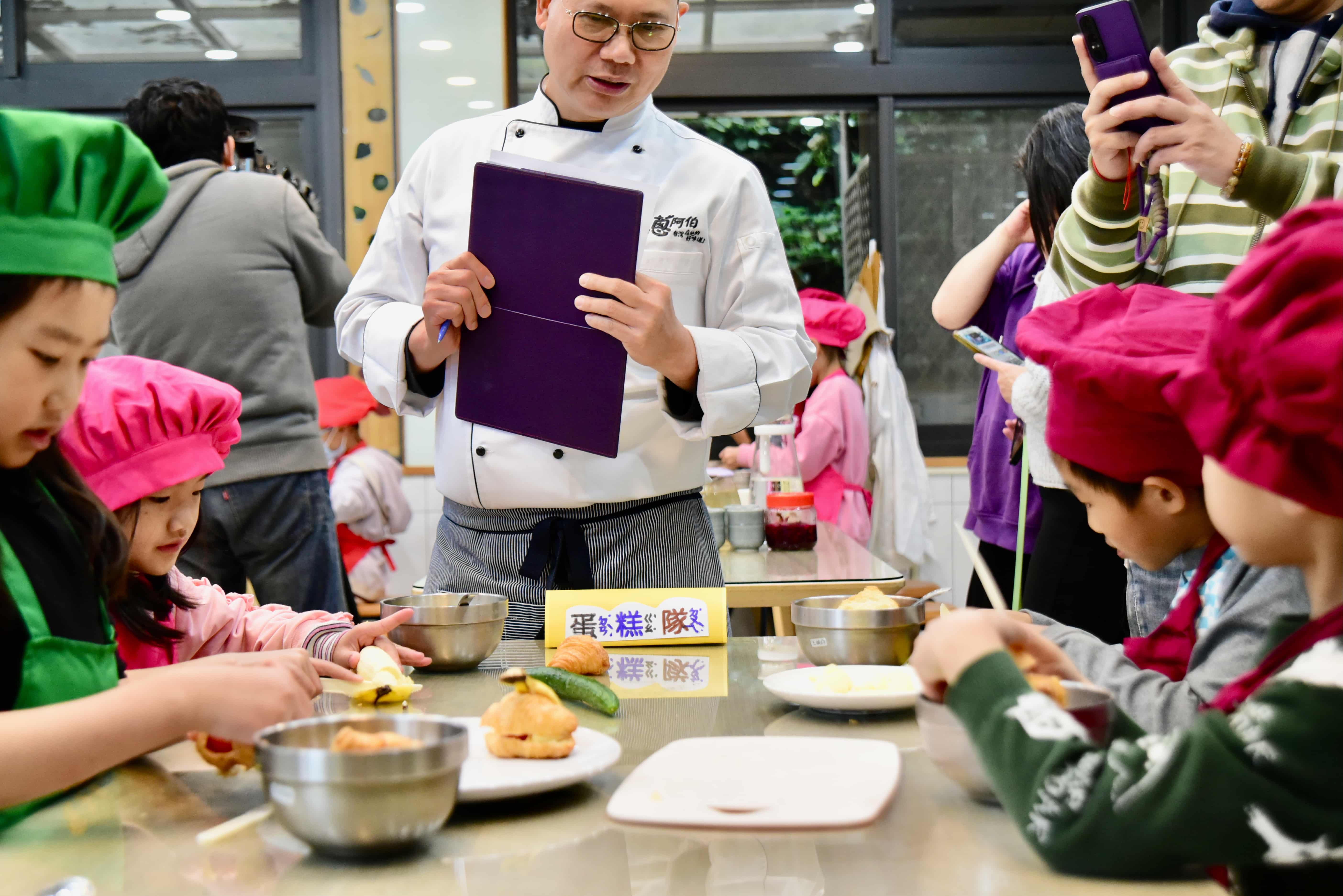 成果展活動中,孩子們親自採集校園野菜,結合秋海棠等在地食材,發揮創意完成一道道充滿巧思的料理作品;同時也引入在地資源,由「蔥阿伯台灣在地好味道」提供蔥抓餅等食材,讓孩子在創作料理的同時,更貼近臺灣日常飲食文化;並在「易牙居港式點心」專業廚師的陪伴與指導下,學習正確的衛生觀念與安全烹調技巧,從實作中建立健康飲食與食安意識。