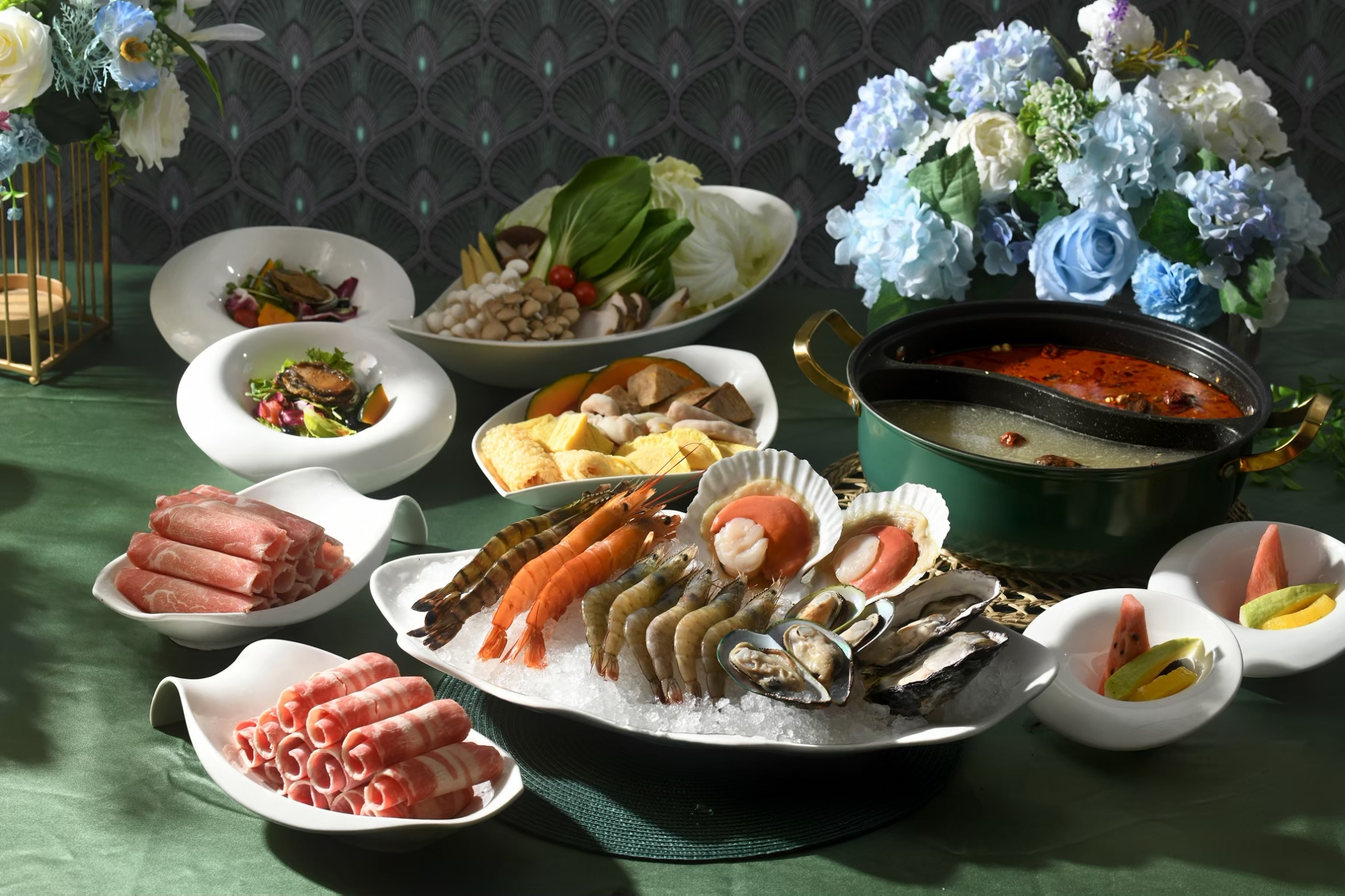 除了靜謐套餐,園區也加碼推出「冠軍牛奶火鍋」,由冠軍主廚打造濃醇乳香湯底,結合精選肉品與時蔬,湯色如雪、口感滑順,溫潤不膩,是冬季最受期待的暖心鍋物。花卉主題靜謐套餐與「冠軍牛奶火鍋」皆為每日限量供應,售完為止,建議提前預約。