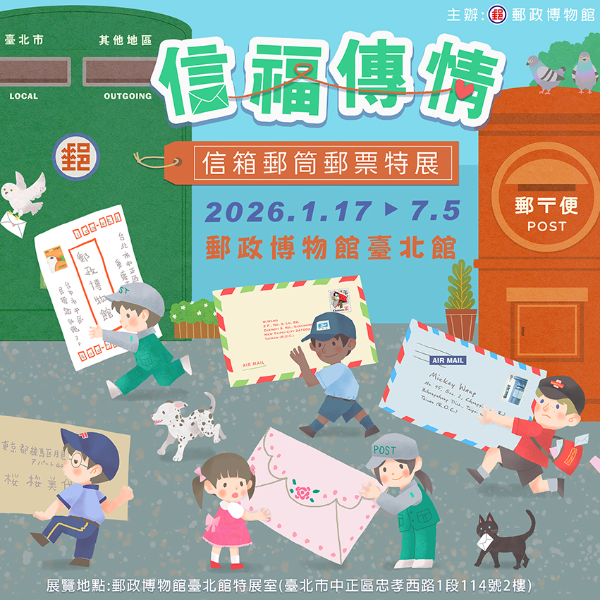 【記者林子霞台北報導】信箱和郵筒不分日夜、無論晴雨,堅守崗位接收各方郵件,是忠實的信件守護者,更是綠衣天使的最佳拍檔。中華郵政公司為介紹各國的信箱和郵筒,訂於1月17日起至7月5日止,在郵政博物館臺北館特展室舉辦「信福傳情-信箱郵筒郵票」特展。