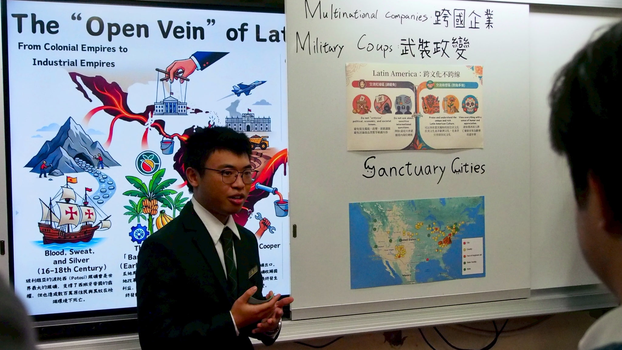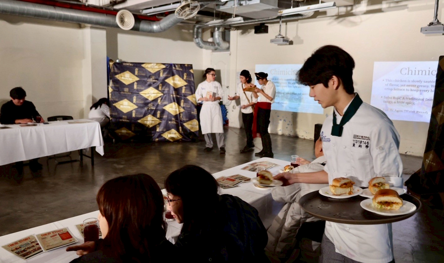 這種對「他者」生命故事的感悟,促使學生進一步溯源中南美洲的文化發展。在國際日中,學生以原創戲劇的方式,讓觀者扮演冒險家一覽拉美地區的風土地貌,並踏足學生與學生交流的八個筆友故鄉,在節慶、物產及飲食特色中探討歷史進程。此外,作為未來的餐飲專業人才,學生在認識拉美文化特色後,更發揮實作所長,製作了具有墨西哥代表意義的洛神花茶以及多明尼加共和國街頭小吃,帶著餐飲人以自己的專長為語彙,透過味蕾傳遞文化故事的使命,讓參與的家長、師生能更深入瞭解這次國際部學生的學習成果。