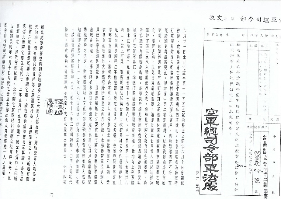 台北市府政風處早知「國軍老舊眷村重建方案」中,原眷戶如原舍臨街,原有舖面經商者,改建後可分回廿四坪店面住家一戶,但此原公文被行政院、國防部、內政部、省府、市府,及市議員周陳阿春等人,認為有利可圖,竟偽造行政院、內政部同文號之公文(內容相反): 偽造成「舖面為省府所有,應公開標售,錢歸省府...」後: 再以「五鬼搬運」手法(用合法之原眷戶申請,以造價獲得,再由軍,政要員瓜分,或加價轉賣給冒充原眷戶的非法人員,貪瀆金額數十億元。 (全省800個眷村改建後舖面均如是,貪瀆金額達數百億,受害眷戶上萬戶。) 多年來,我曾向市府請其据理力爭其權益,或協助我法律輔導訴訟,但他總冷漠以對,且在電話溝通中惡言相向,似乎事不關已,實人不解?! 請向市府調卷: 1、行政院71、03、11日台(71)內字3786號文 2、內政部71、02、16日71台內營字第70233號文 即知(另附偽造後之行政院、內政部文,及市府與軍方偽造的協我議書及盜賣舖面的會議紀錄...)