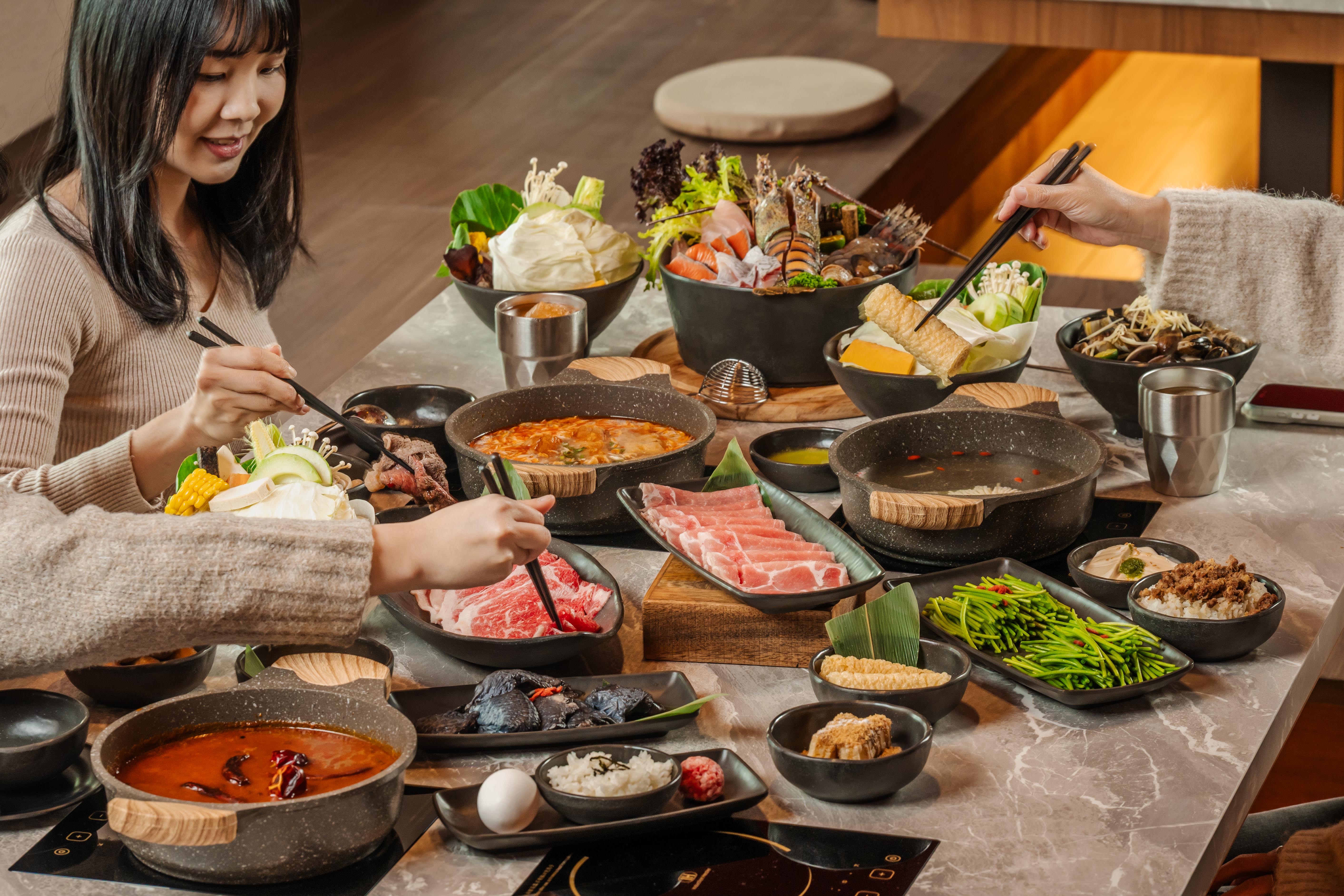 在湯底選擇上,丹生炊事共推出七款好湯底,包括以台產白甘蔗與多款新鮮蔬果、昆布熬煮而成、甘香清甜的「甘蔗清原湯」,以及老母雞搭配十全藥膳燉煮10小時、濃郁滋養的「十全溫補熬雞湯」;另有以無添加豆漿結合川味擔擔醬的「擔擔鹹豆漿」,以及多款花椒與辣椒慢炒熬製、香麻圓潤的「川椒紅香湯」。此外,還提供古法醃漬酸白菜燉煮的「酸菜白肉鍋」、醬香回甘的「日式壽喜燒」,以及整瓶米酒入鍋、酒香溫潤不油膩的「燒酒雞鍋」,完整展現丹生炊事對原湯風味的多元詮釋。