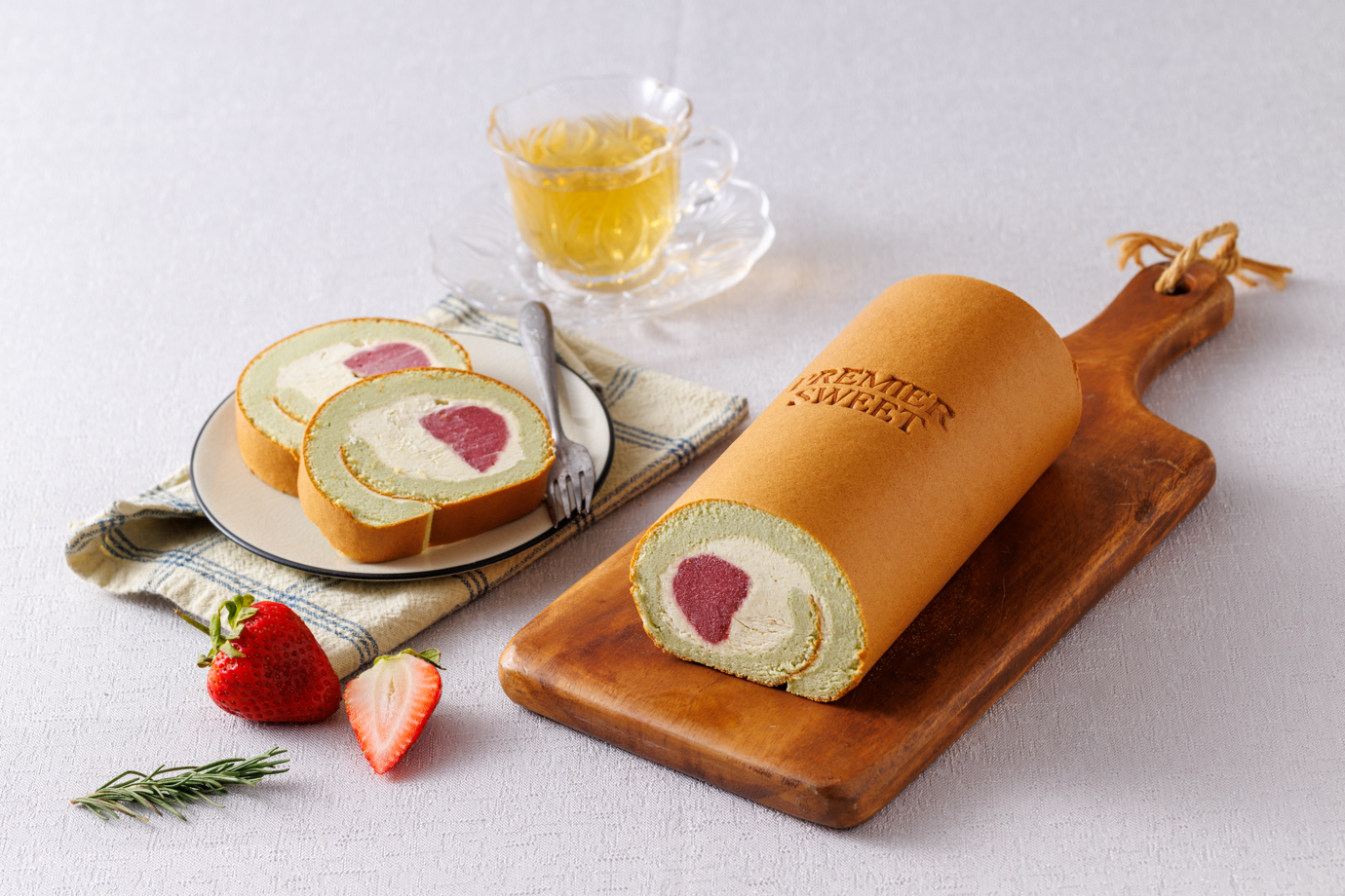 圖說:「開心果生乳捲」(售價700元)使用北海道四葉鮮奶油搭配濃郁開心果醬與玫瑰覆盆子果餡。(JR東日本大飯店台北提供)