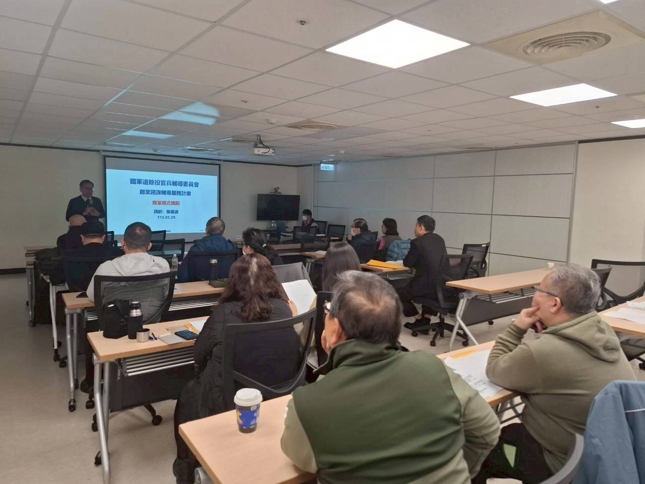 為強化輔導並提供退除役官兵及榮眷就創業多元訊息,台北市榮民服務處(29)日辦理「職涯講座」暨「創業座談」活動,特別邀請經濟部青年創業貸款輔導顧問簡義源老師針對創業財務基礎概念、資金規劃、風險控管及多元職涯轉換等多面向議題進行經驗分享,並針對與會人員所提問題皆能即時給予精闢回饋,現場三十餘名榮民眷參加,講座內容乾貨滿滿,互動踴躍熱絡。