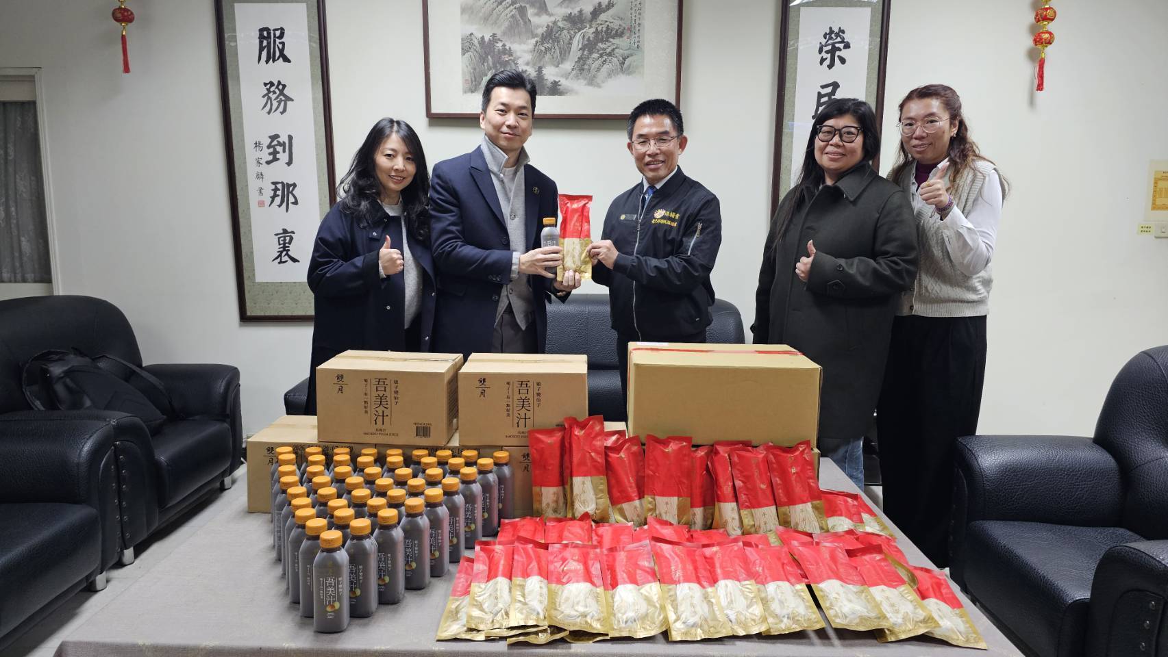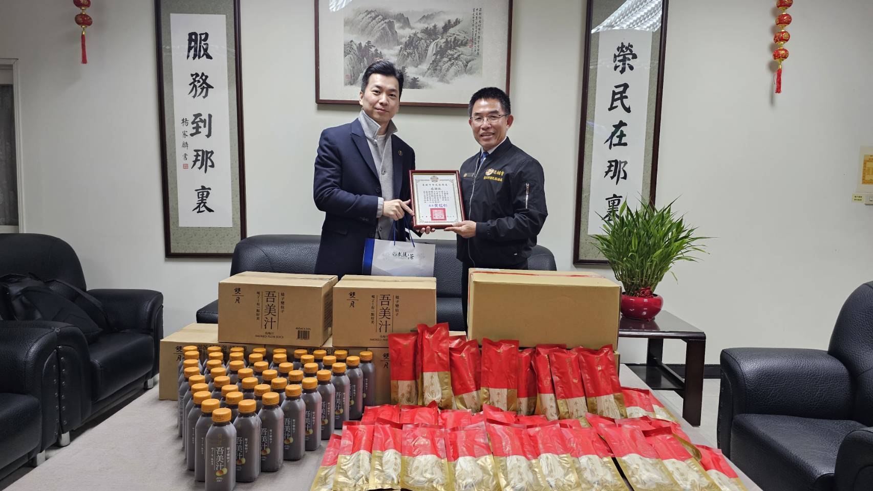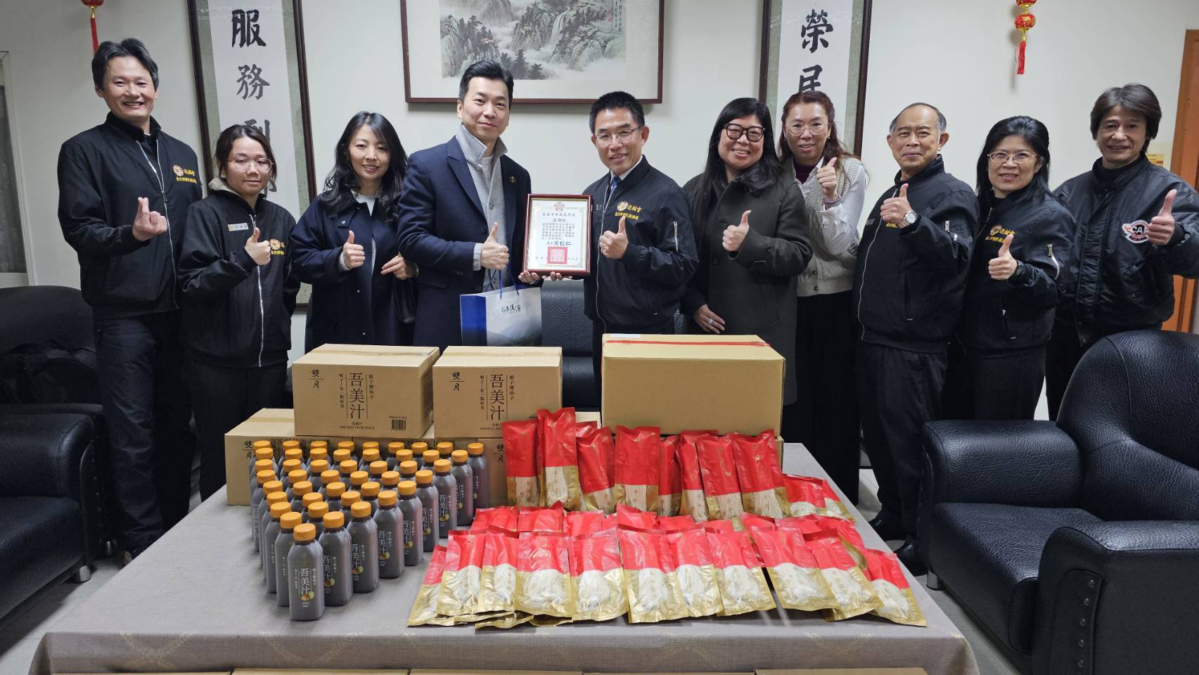 榮服處處長黃信仁致贈感謝狀予該協會並強調:「雙月食品社不僅以優質餐點守護民眾健康,更將這份為家人付出的心,延伸至對榮民長輩的實際關懷,這樣的善行令人感佩。期盼這份溫暖能持續擴散,讓更多人一同加入關懷榮民(眷)的行列」。此次捐贈的麵線與烏梅汁,不只是生活所需,更承載著滿滿的心意和祝福。