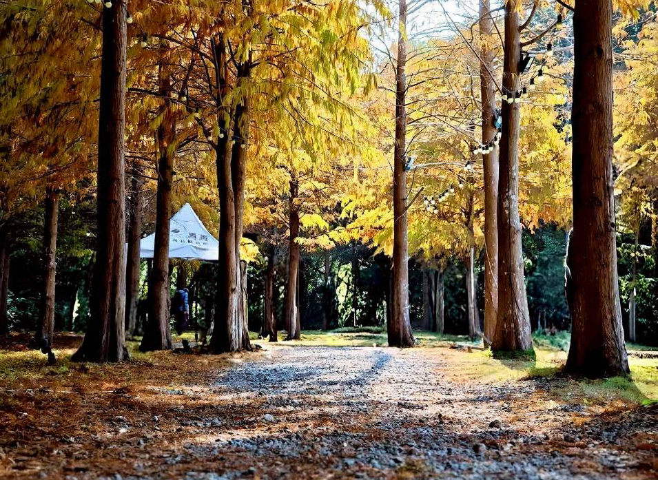 圖說:青青食尚花園會館落羽松林道,是走春行程中兼具景觀與聚餐機能的停留點。